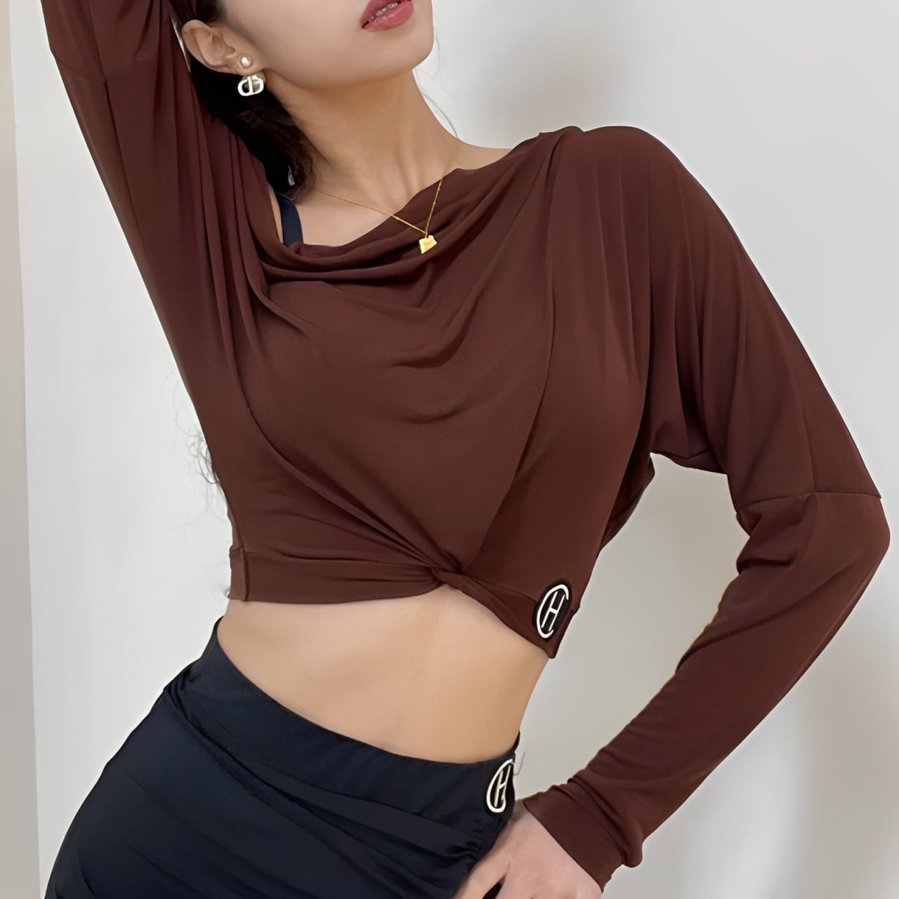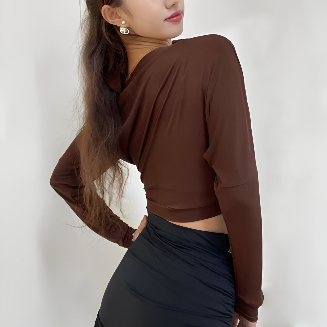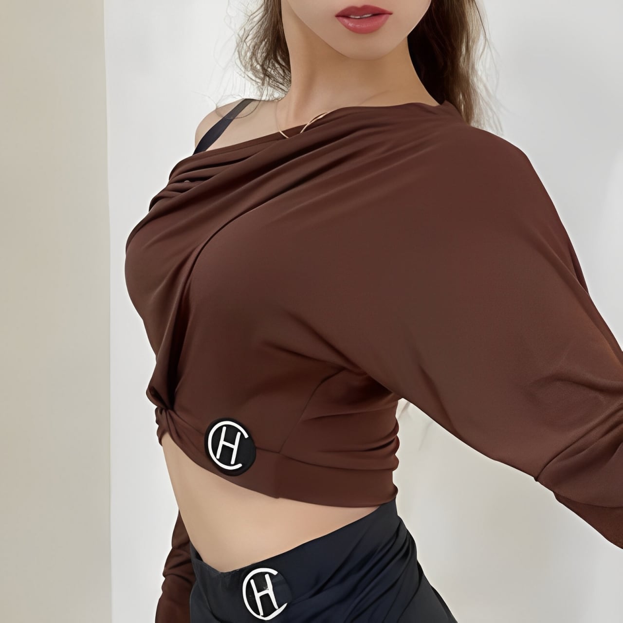 ドロップショルダー ボディコンシャス トップス& ヘアバンド セット 2col D00070