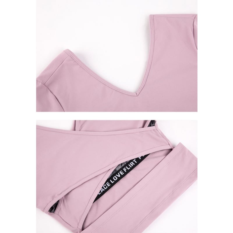 クロスバックデザインが魅力的なロングスリーブクロップドトップス。