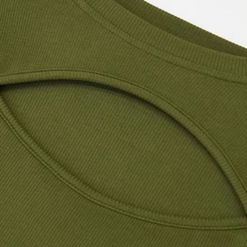 キーホールネックのさりげない肌見せが、女性らしさを際立たせます。