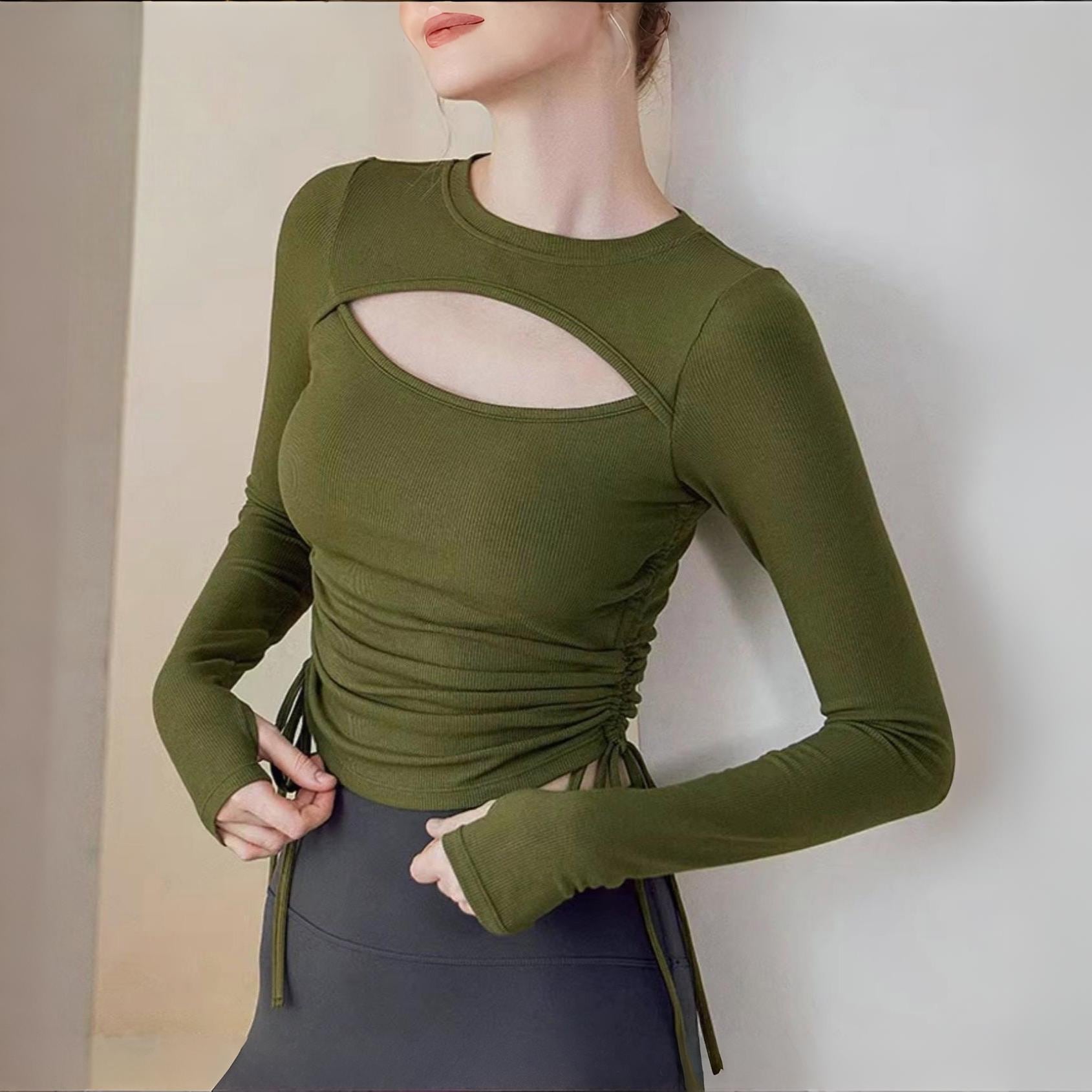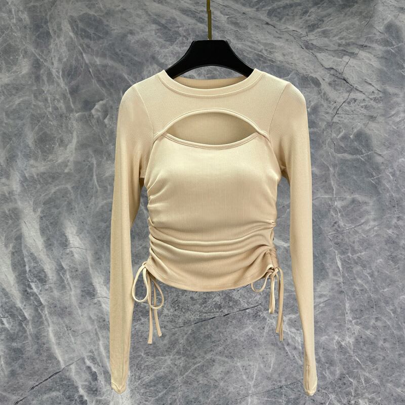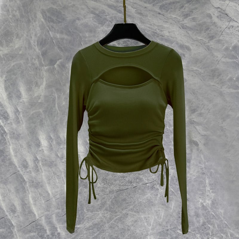 キーホールネック サイドドローストリング トップス 4col D00022