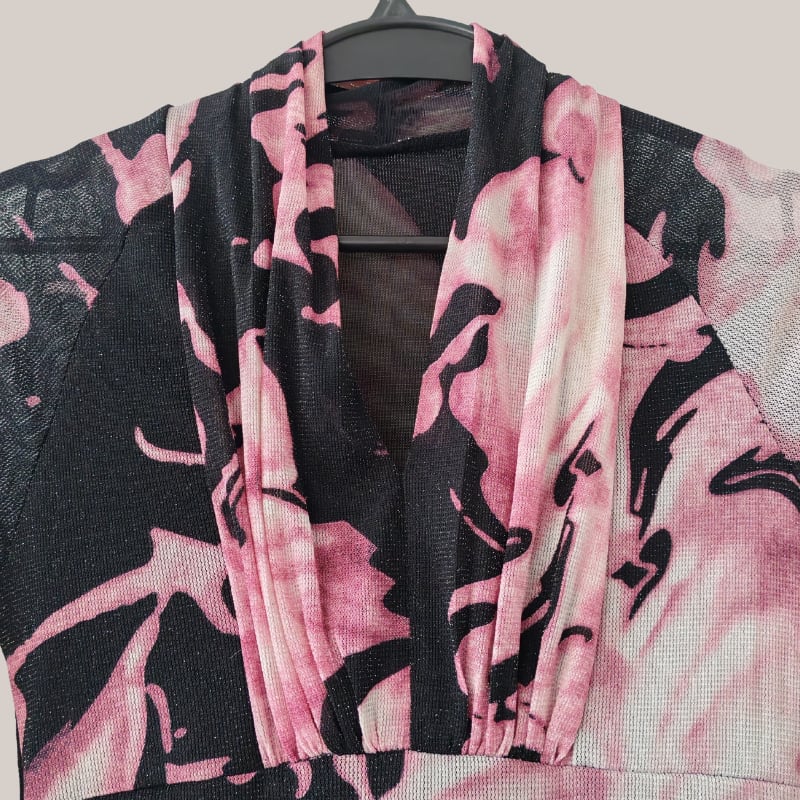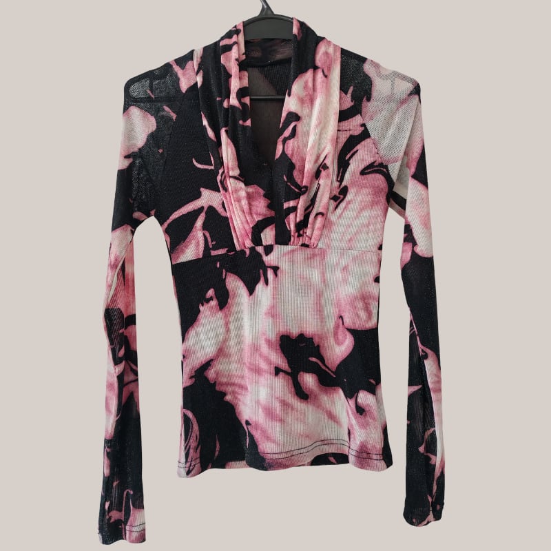 Vネック メッシュ カシュクール ロングスリーブ トップス 2col D00028