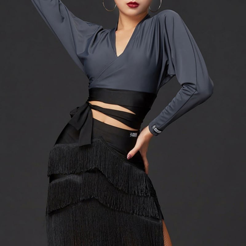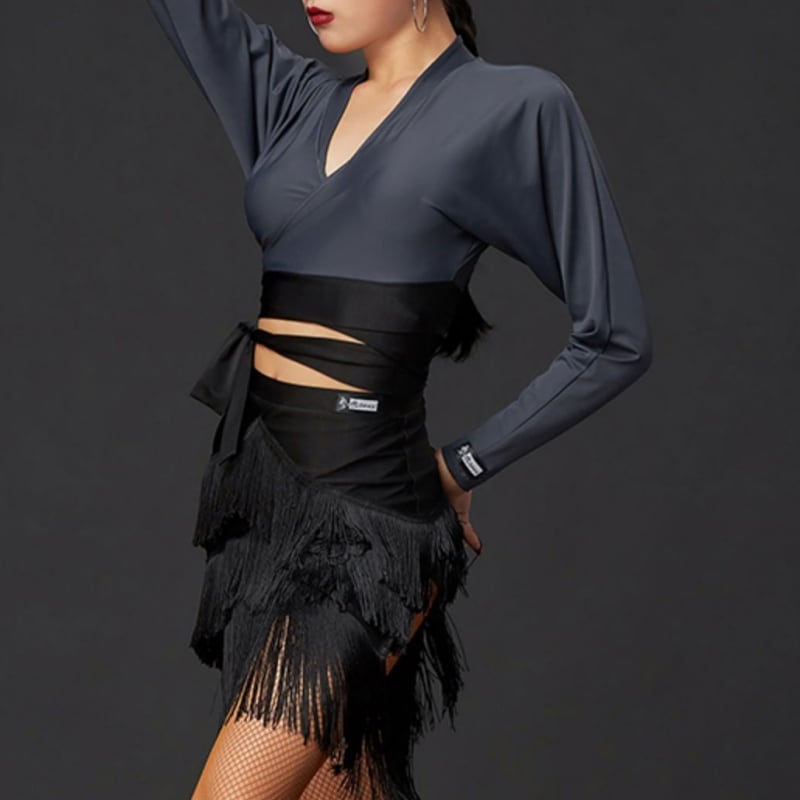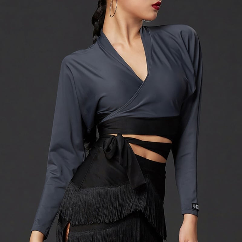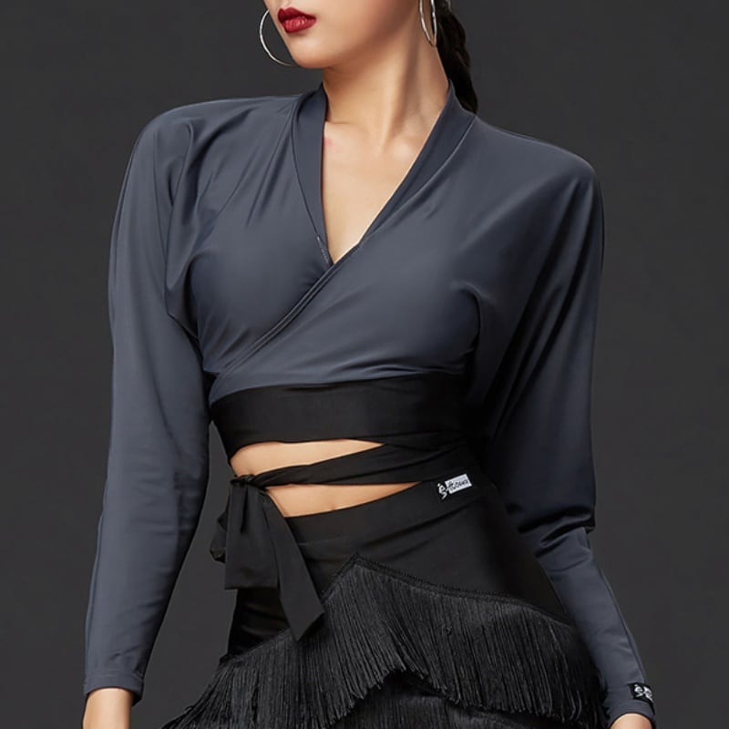 シンプルながらも個性を放つラップデザインのクロップドトップス。