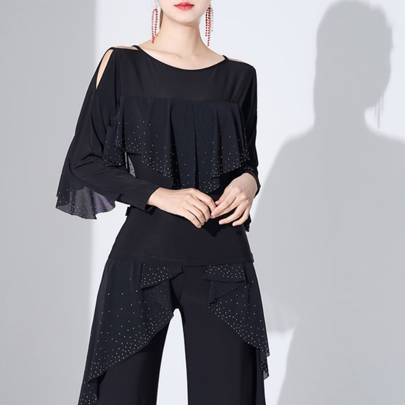ケープスリーブ フリル ラインストーン トップス 3col D00092