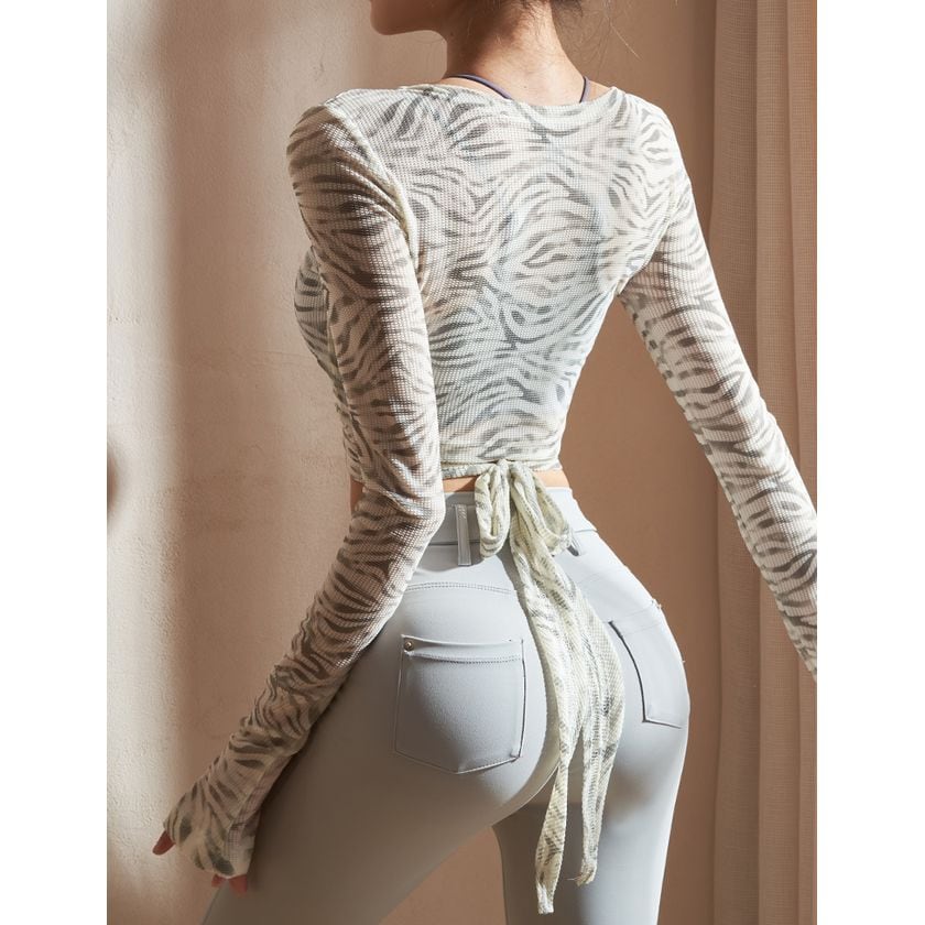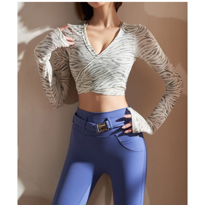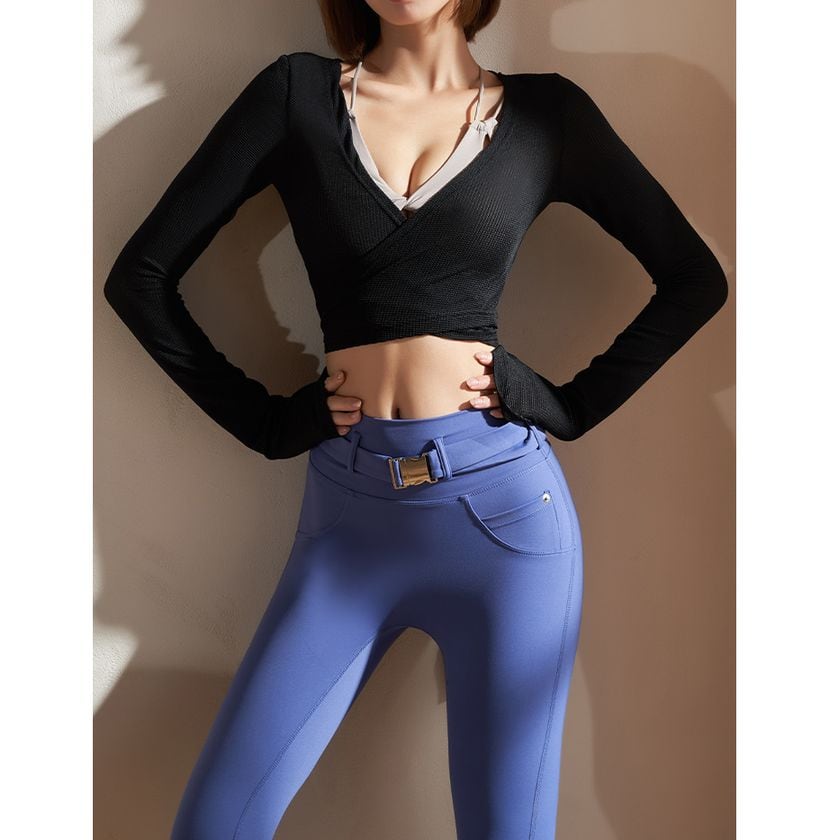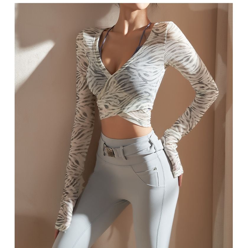 ボディラインを美しく魅せるクロップド丈のトップス。