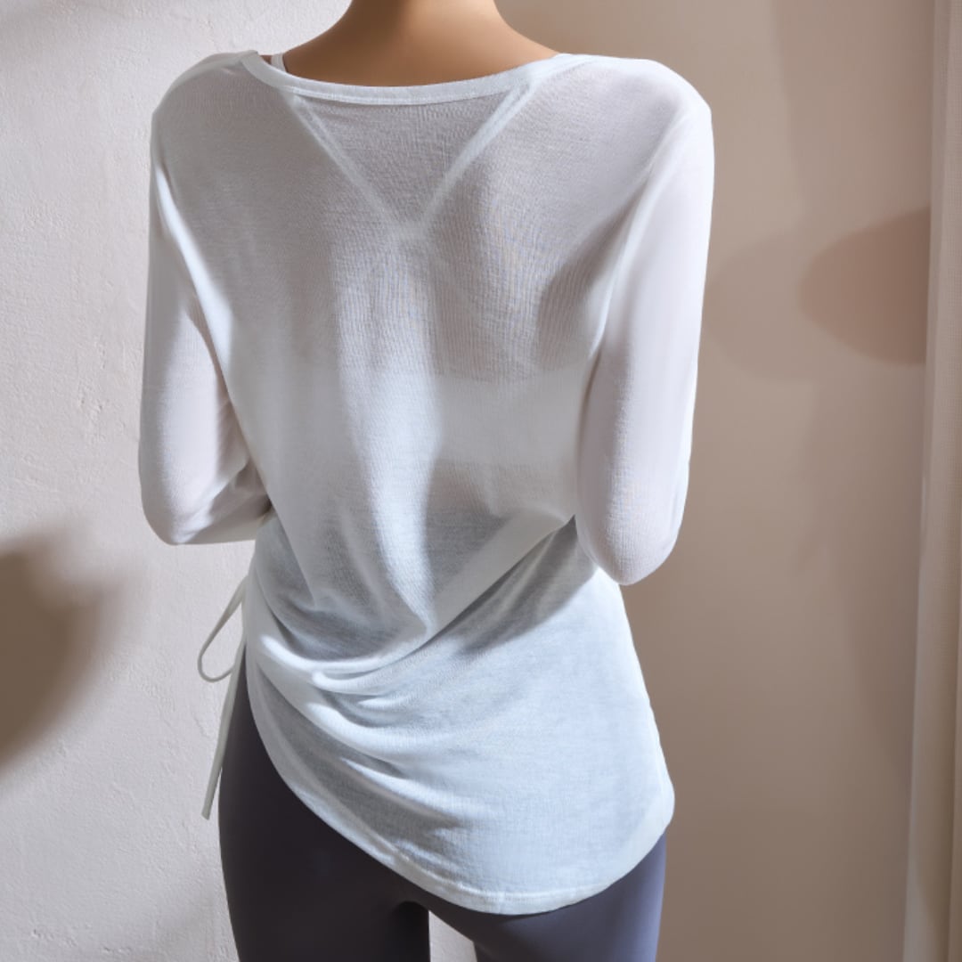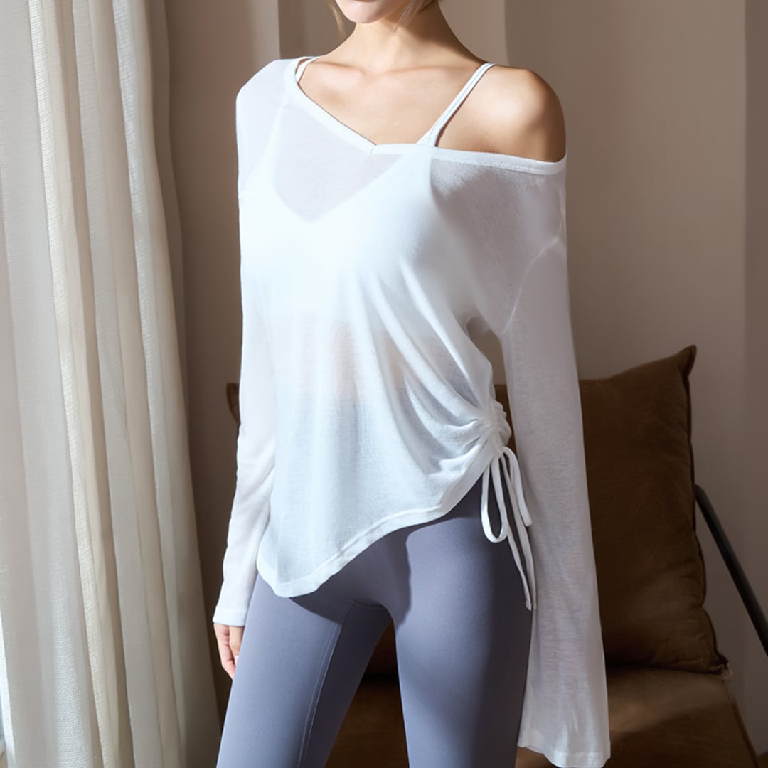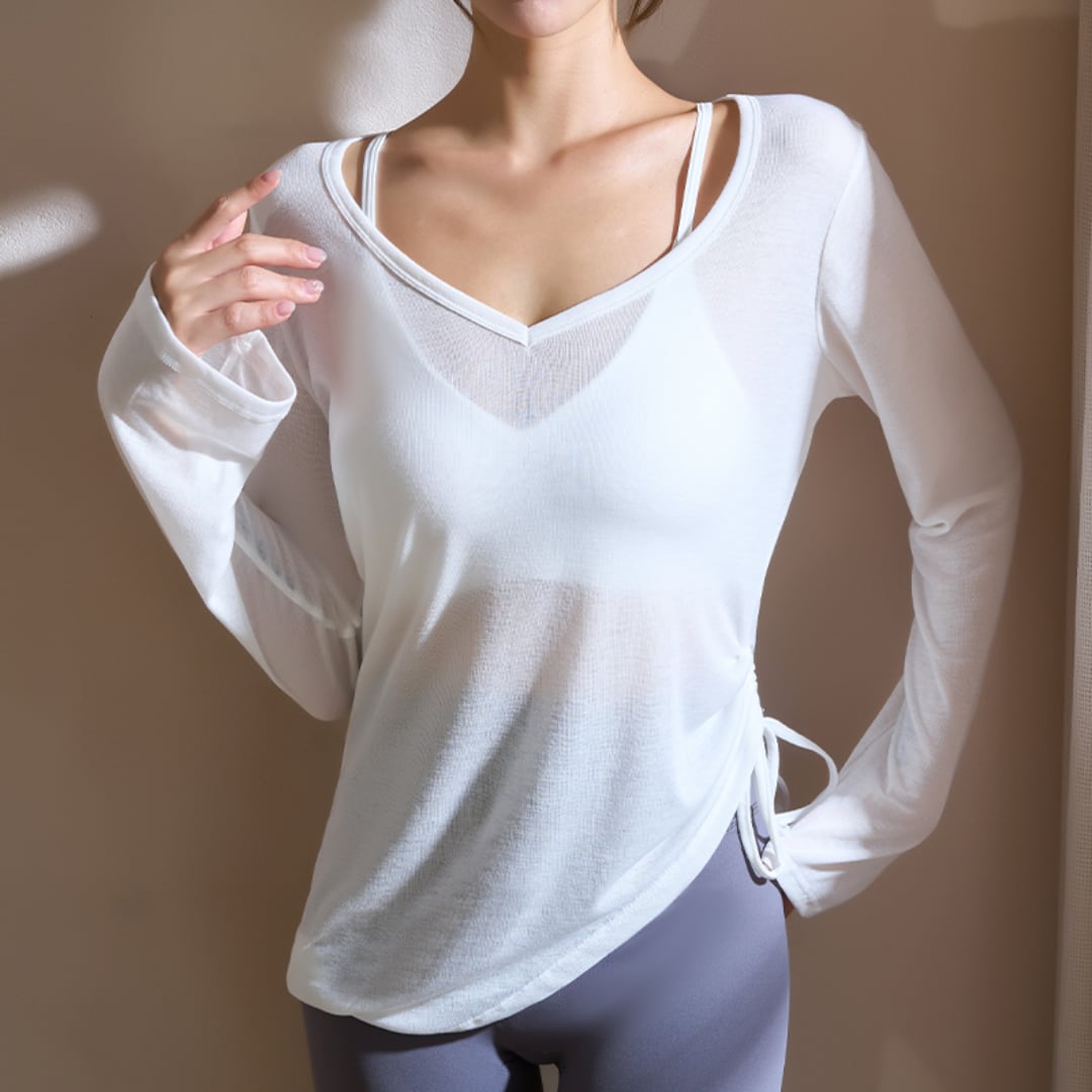シースルー サイドドローストリング Vネックトップス 4col D00136