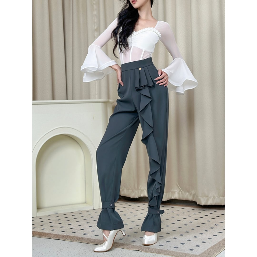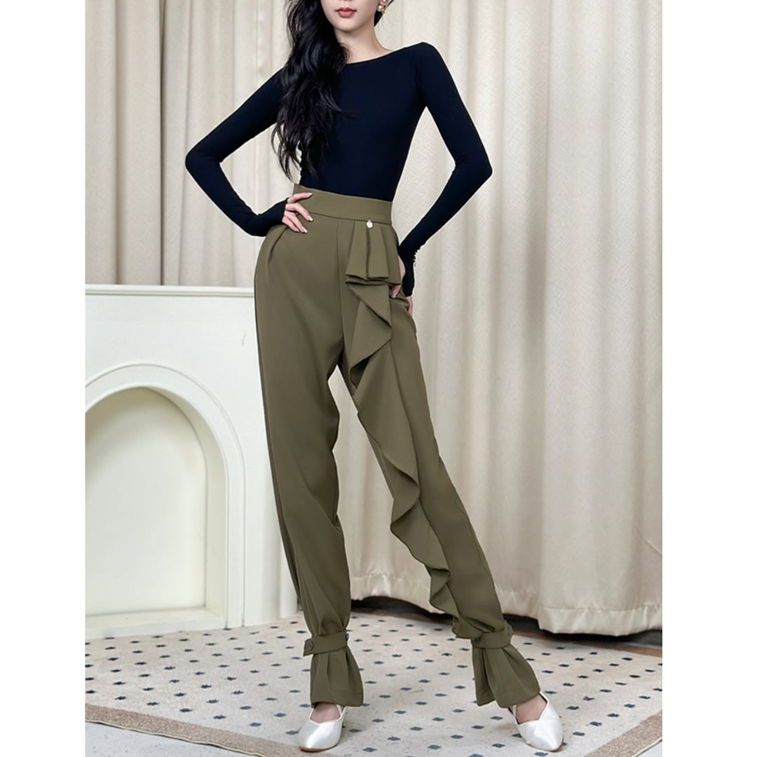 フリルディテール テーパード フルレングス ダンスパンツ 2col D00198