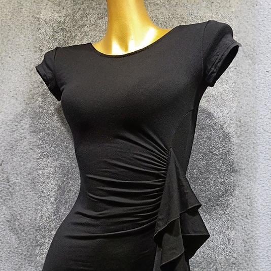 アシンメトリーヘム ドレープ サイドフリル ドレス 1col D00178