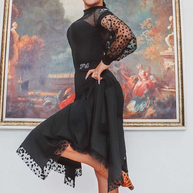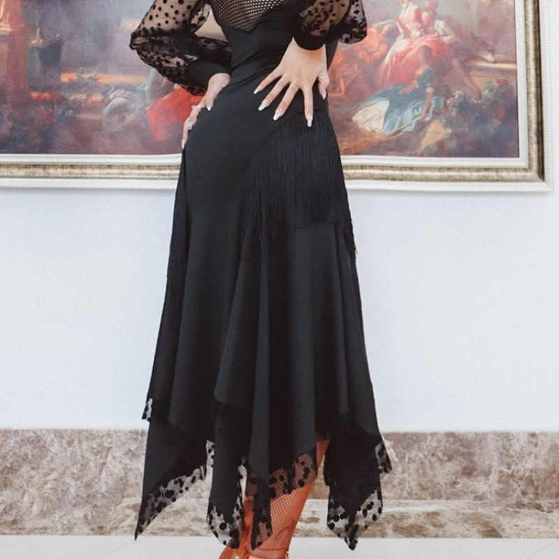 裾にかけて軽やかに広がるシルエットは、ダンスやステージ衣装として最適です。