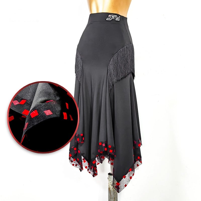 フリンジ付 アシメトリーヘム シアー ロング スカート 2col D00173