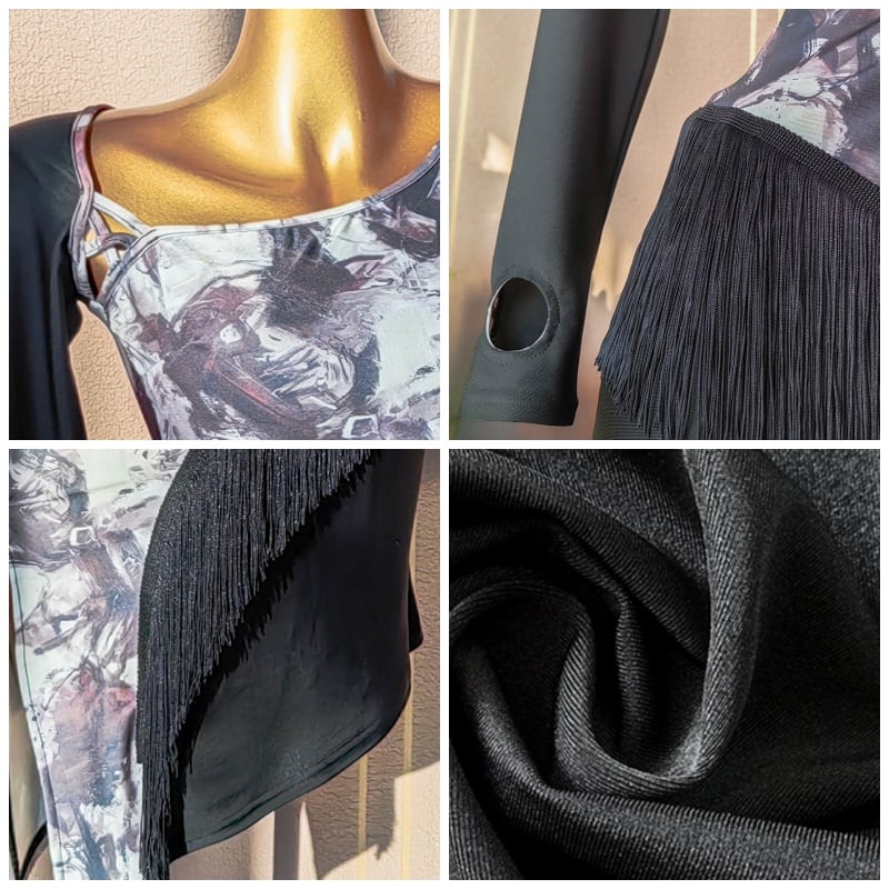 個性的な抽象柄が目を惹く、アシンメトリーなラテンドレス。