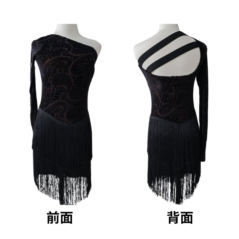 フリンジヘムライン ワンショルダーアシンメトリー ラテンドレス 1col D00230