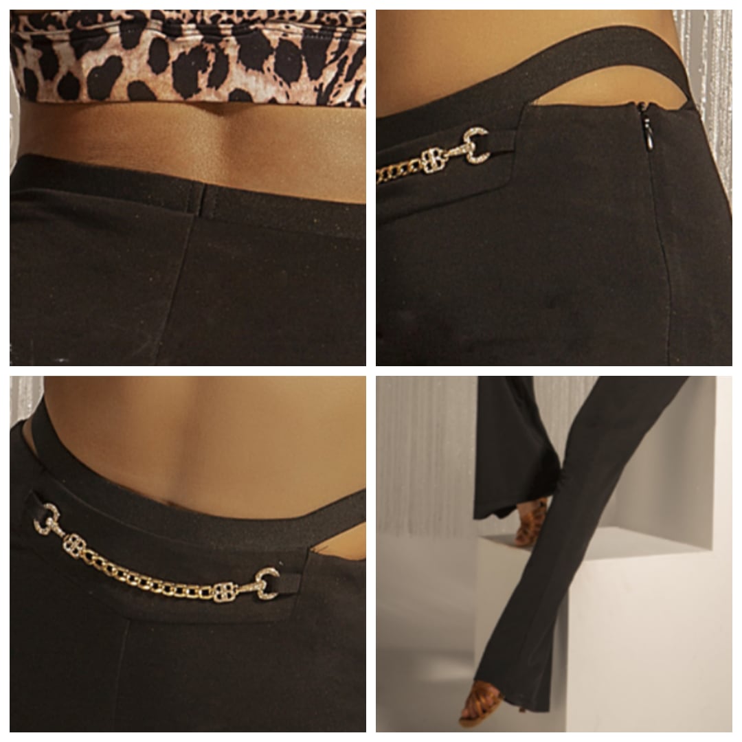 ハイウエストカットアウト チェーンベルト ワイドパンツ 1col D00234