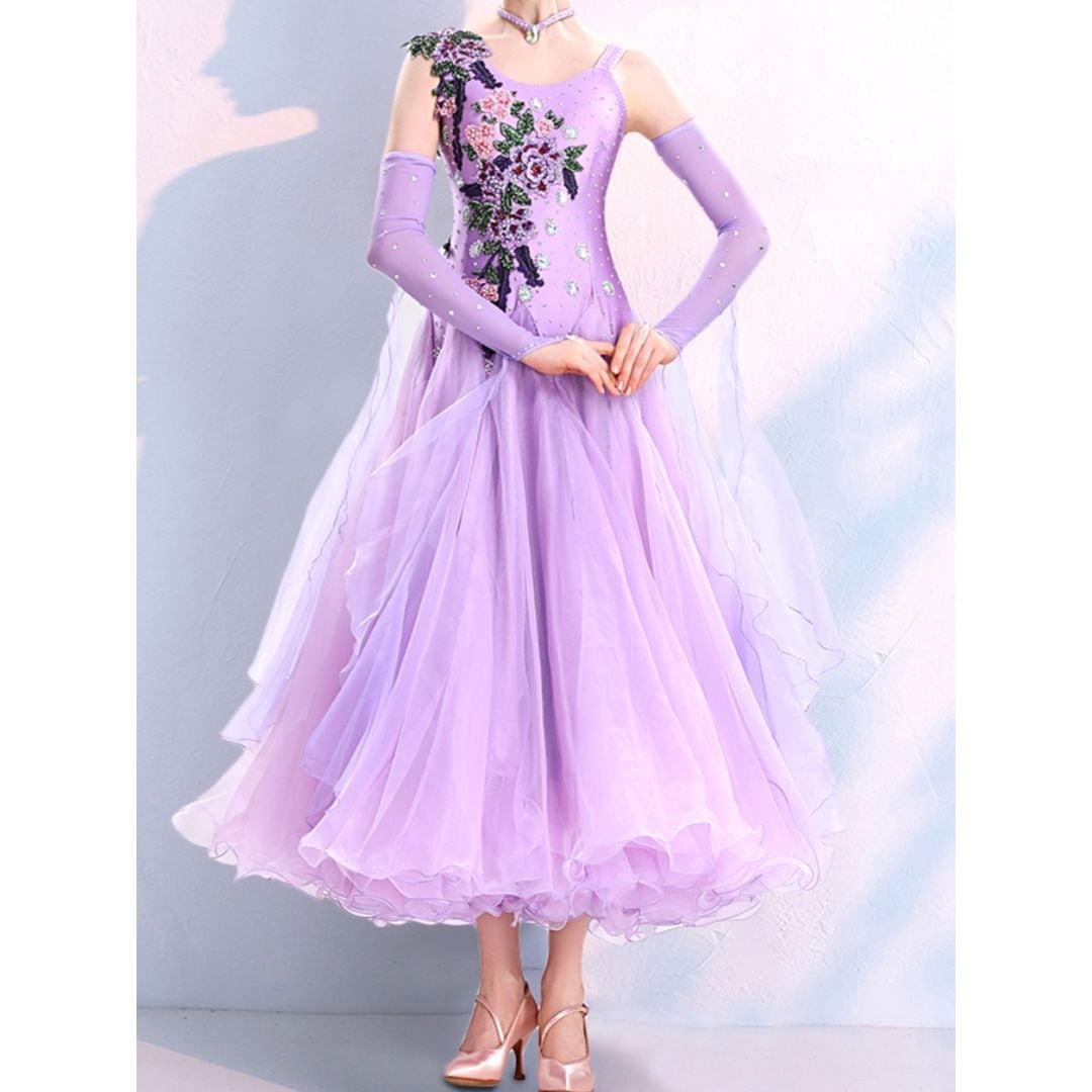 アームスリーブとシフォンスカートは、ラインを美しく見せるとともに動きに合わせて優雅に舞います。