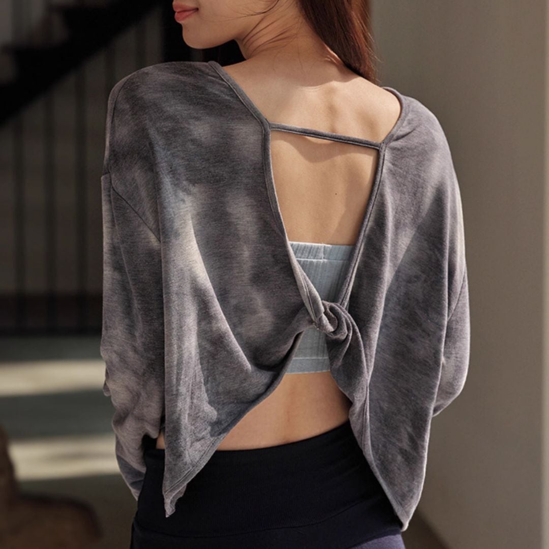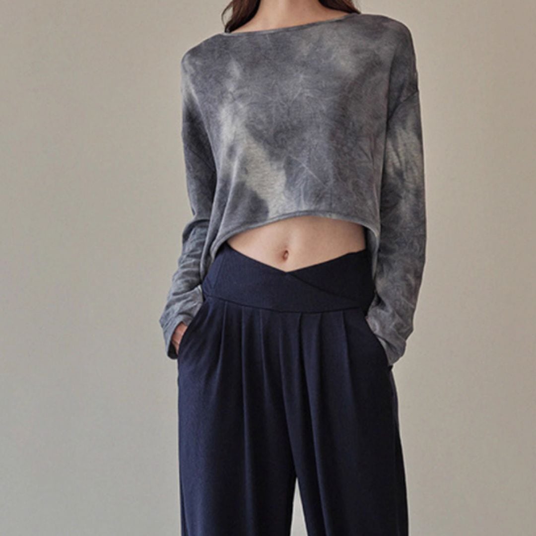 大胆なバックシャンのダイタイデザインが魅力のクロップド丈トップス。