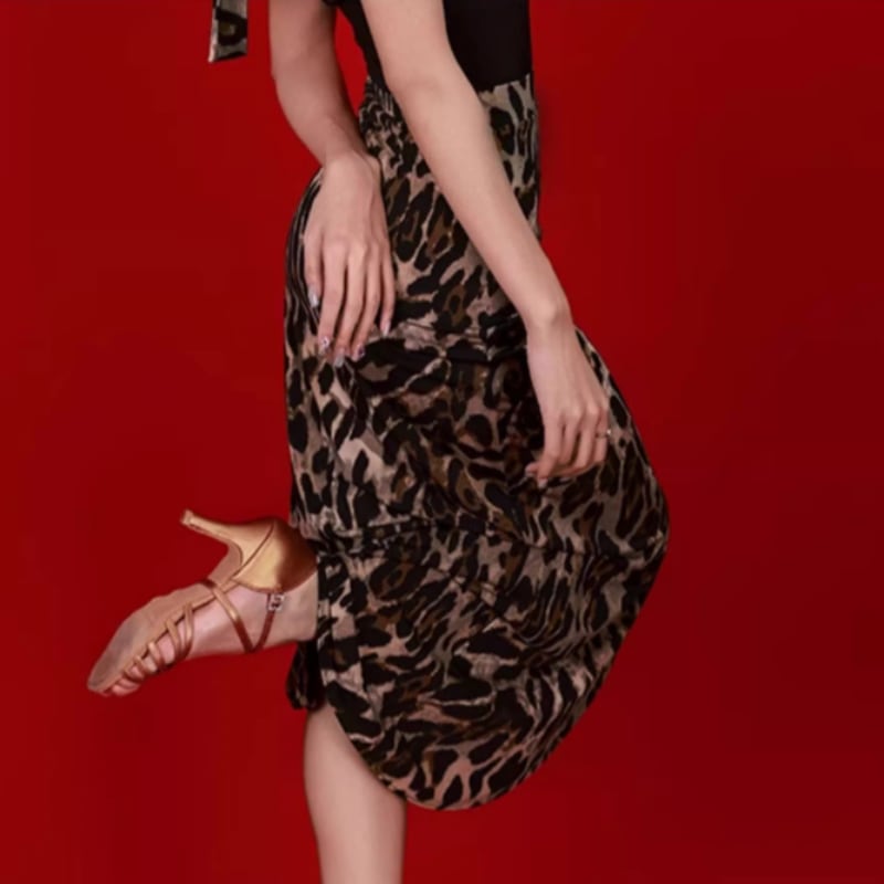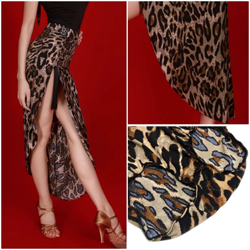 レオパード ハイウエスト サイドスリット ラテンスカート 1col D00313