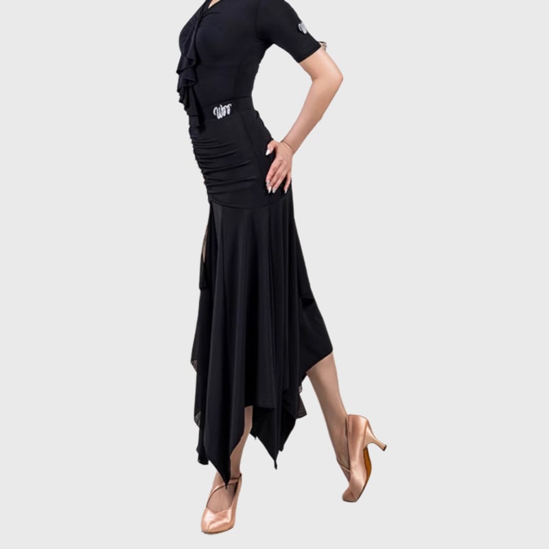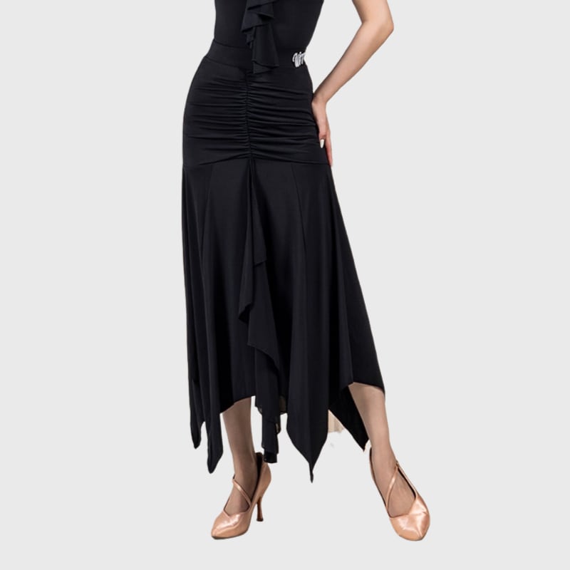 ハイウエスト シャーリング アシメヘム フレアダンススカート 1col D00338