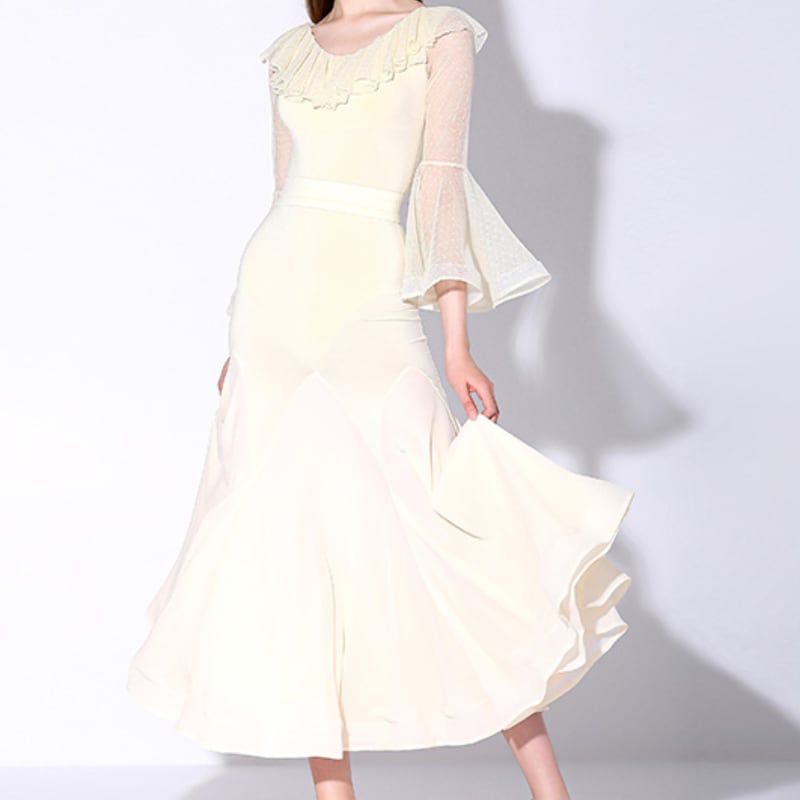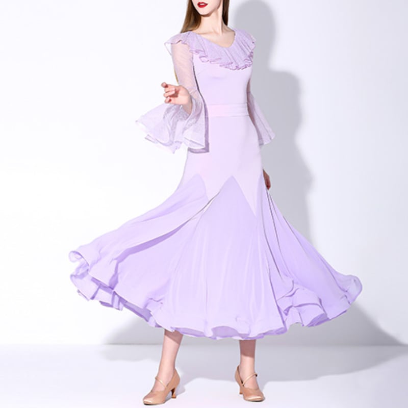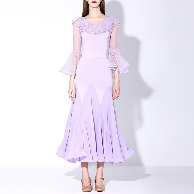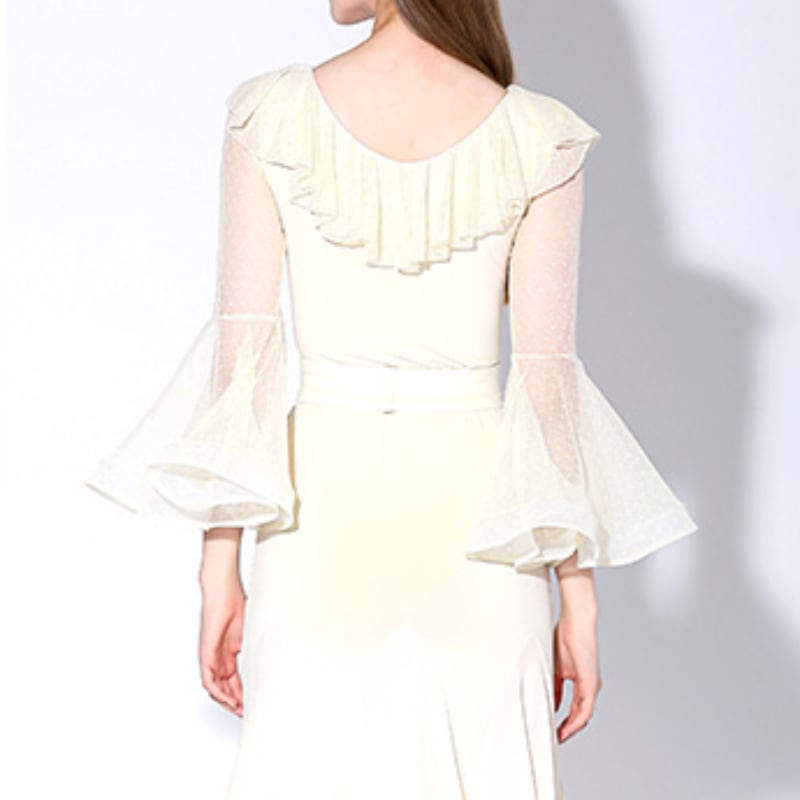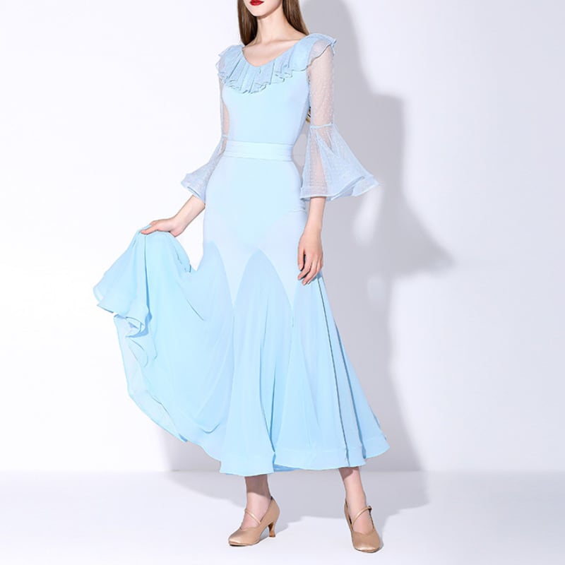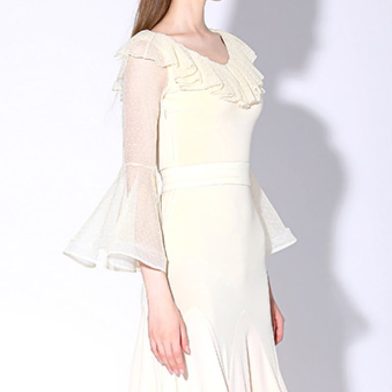 メッシュフリルスリーブ シフォンフレア ダンスドレス 3col D00347