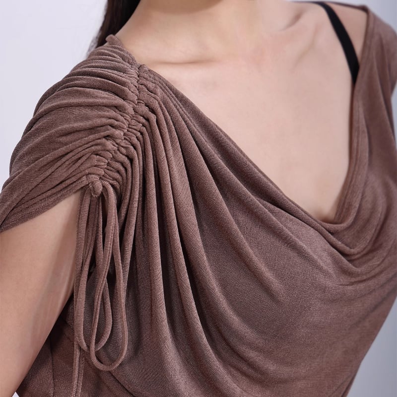 ドレープデザインが身体に美しく沿う、優雅なシルエットが叶うダンスドレス。