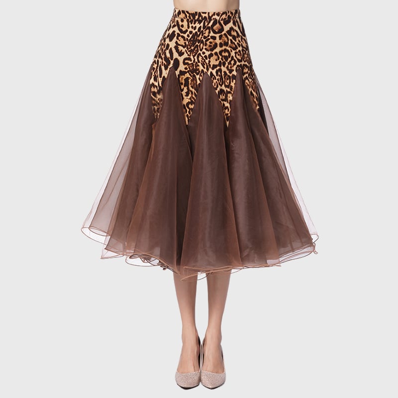 艶やかなレオパード柄と、軽やかに揺れるオーガンジーの組み合わせが、個性的で優雅なダンススカート。