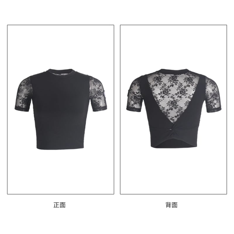 ハイネック フラワーパターン ショートトップス 1col D00365