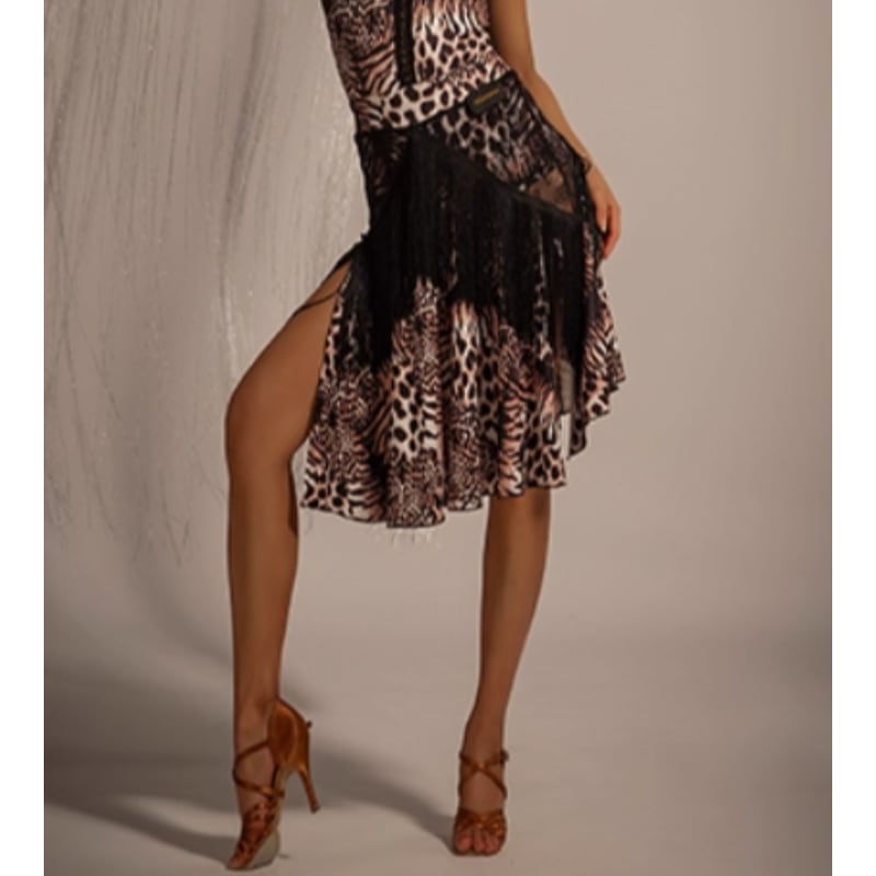 レースとフリンジのディテールが魅力的な、ダンススカート。