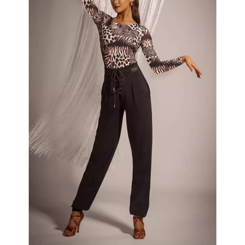 クルーネックで上品さを保ちながら、股下まで繋がるレオタードタイプでダンス中も生地が寄らずにすっきり着用できます。