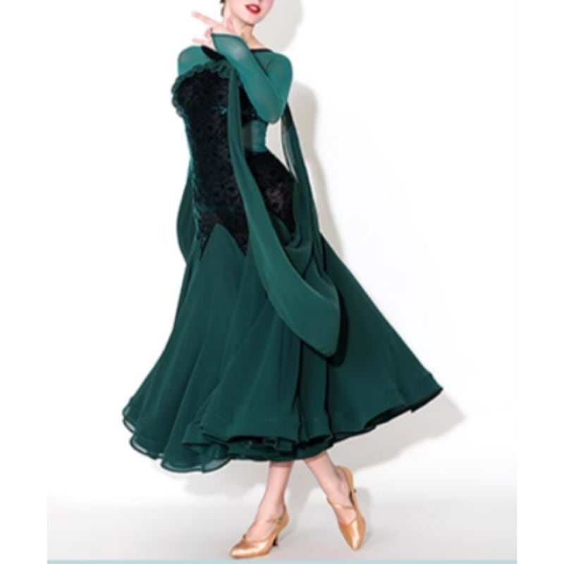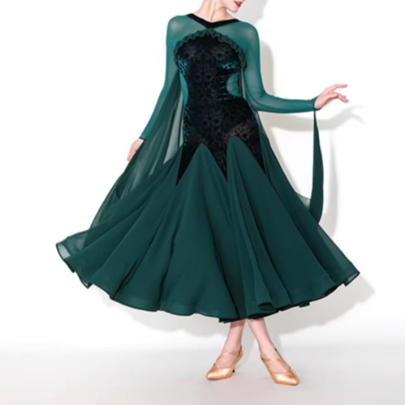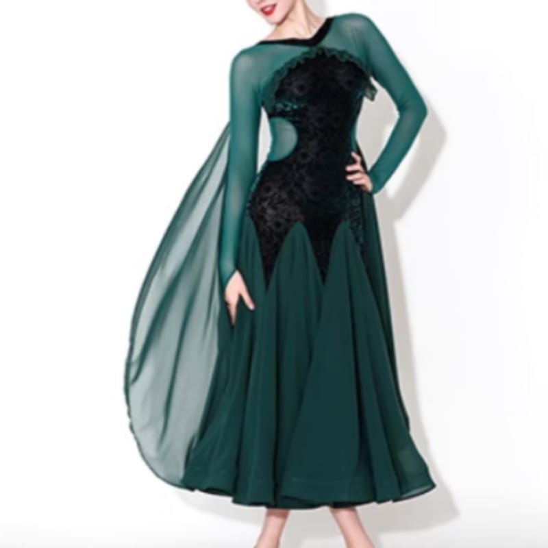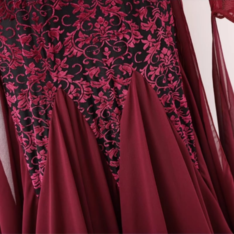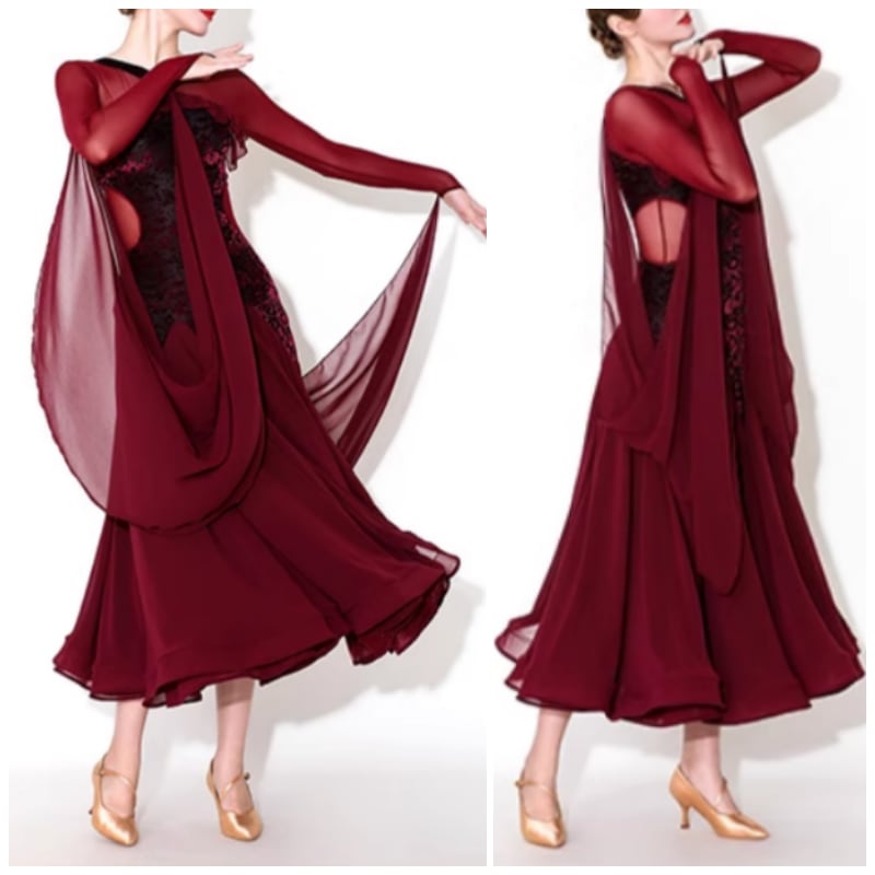 動きに合わせてたなびく豊かなフレアスカートとケープのドレープが、あなたの優雅な表現力を最大限に引き出します。