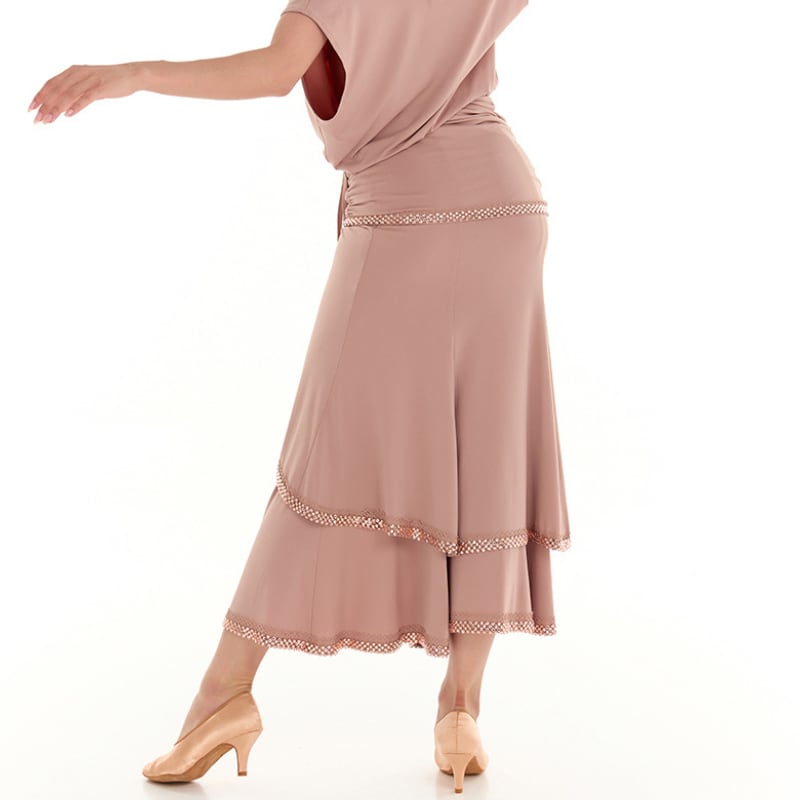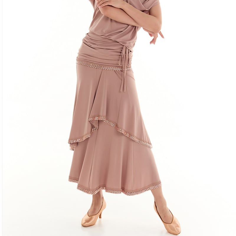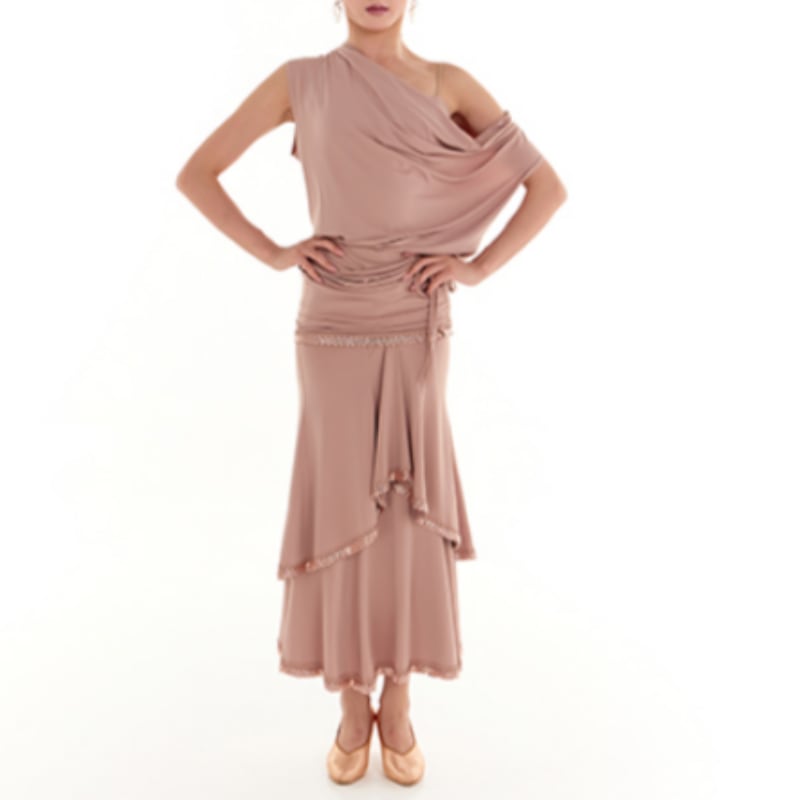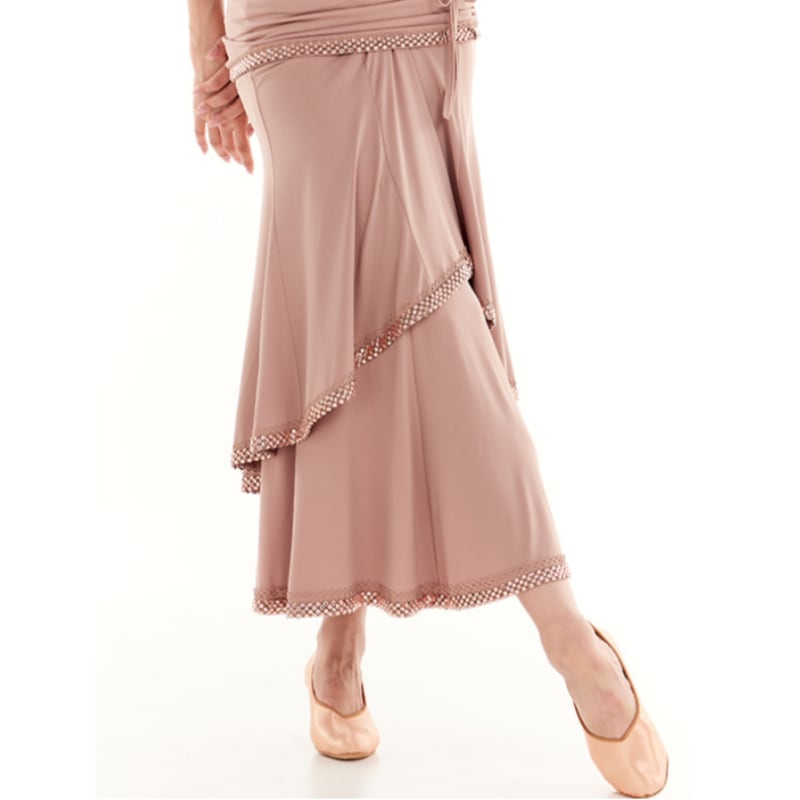 計算されたルーシュ(ギャザー)とドローストリングで、腰回りをすっきり見せるエレガントなダンススカート。