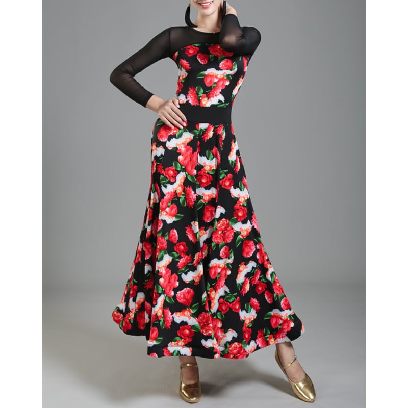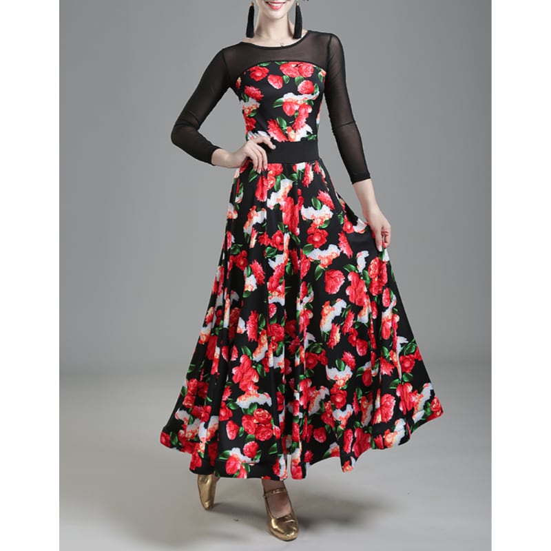 メッシュスリーブ ボートネック フレア ダンスドレス 4col D00420