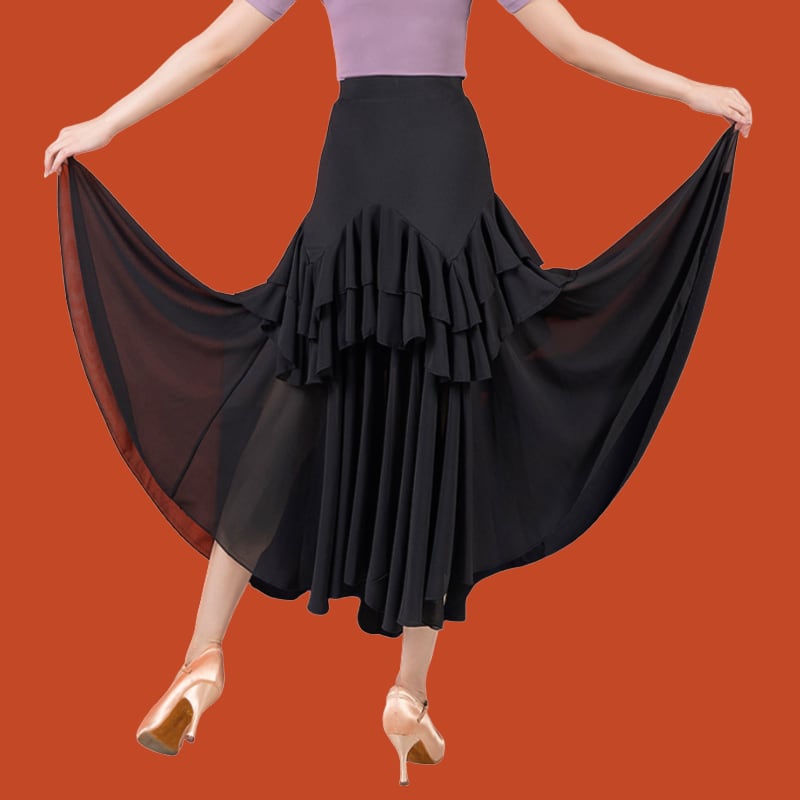 軽やかな素材が、ターンやムーブメントのたびに大きく優雅になびき、あなたの表現力を最大限に高めます。
