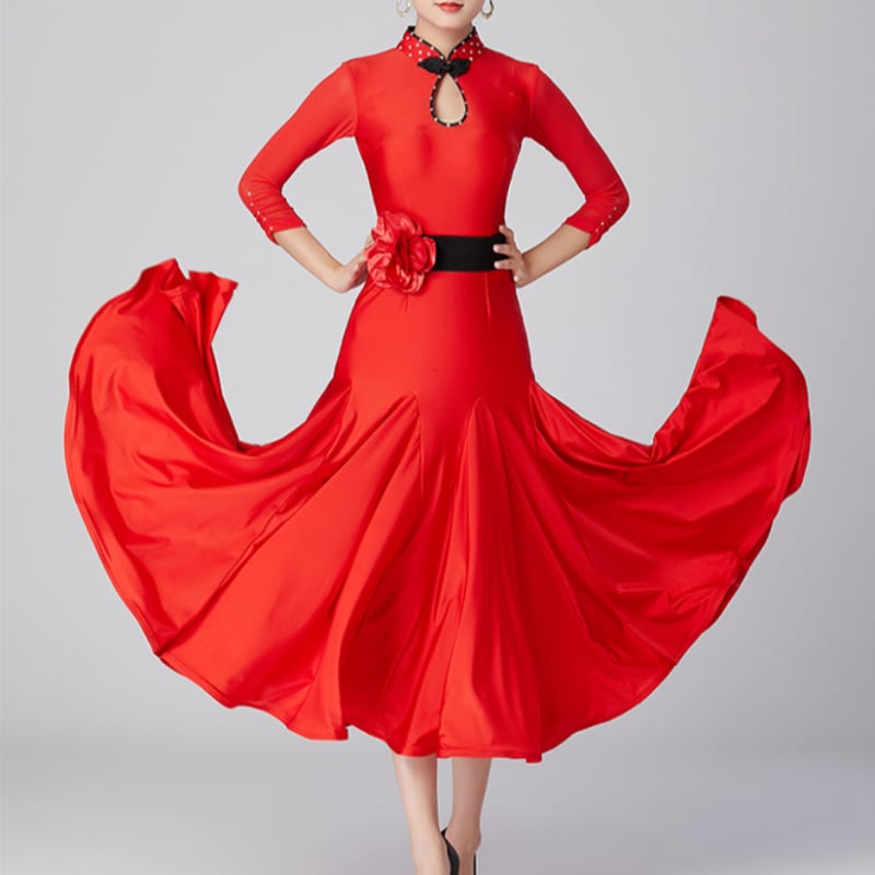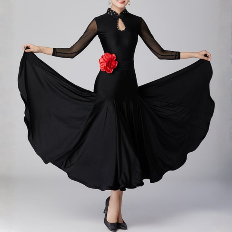 ハイウエストから広がる豊かなフレアスカートは、ターンやステップの動きを最大限に引き立て、美しさとダイナックさを表現します。