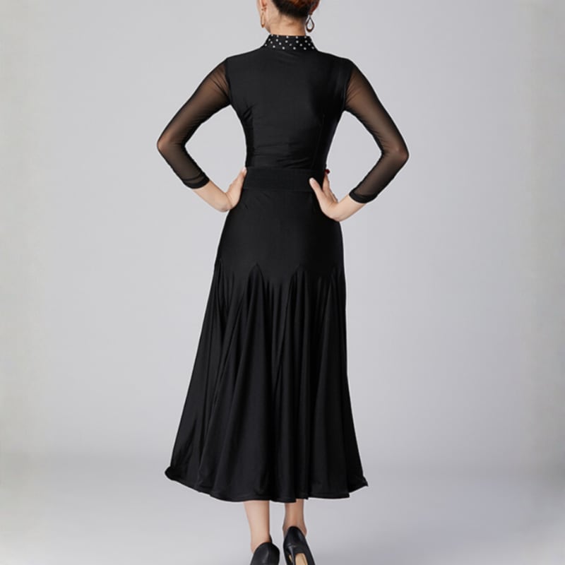 ラインストーン モックネック キーホール ダンスドレス 1col D00443