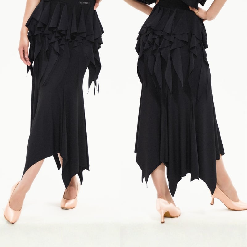 幾重にも重ねられたスパイク状のラッフルフリルが、ターンやステップのたびにドラマティックな陰影を生み出します。