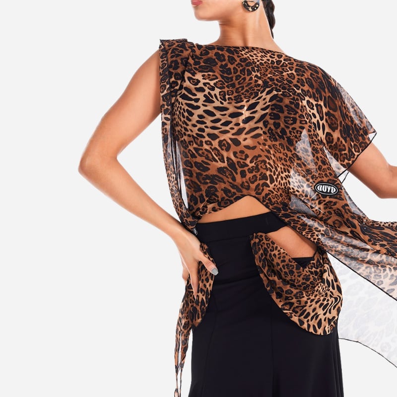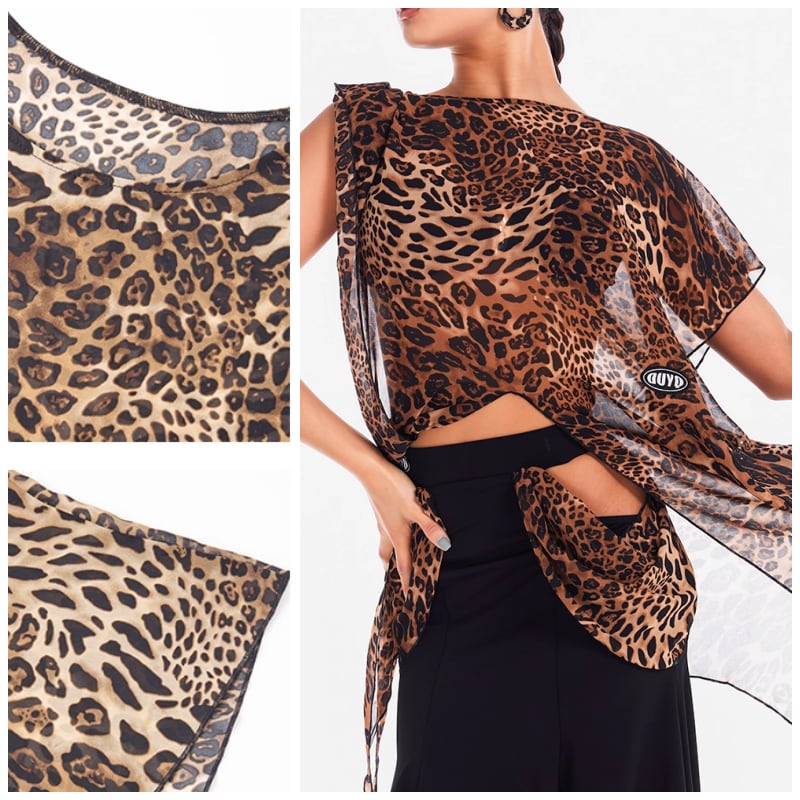 アシンメトリーヘム レオパード シースルー トップス 1col D00452