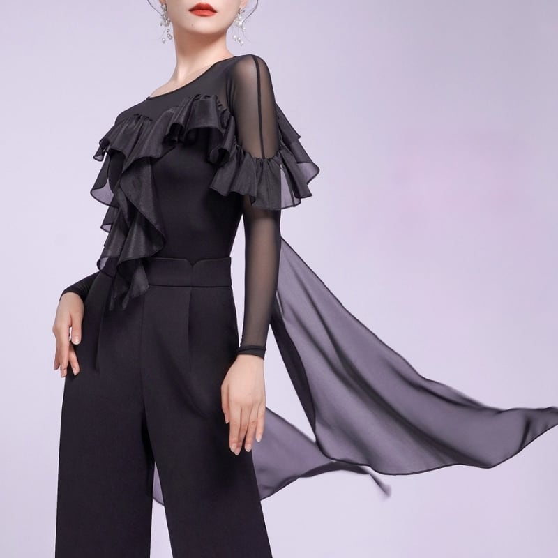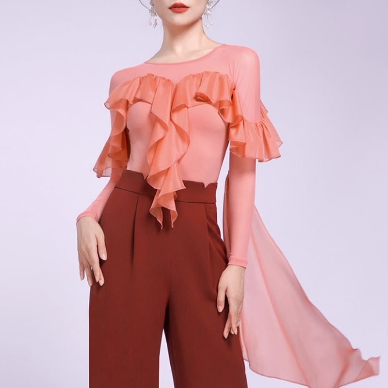 ワイドパンツやシンプルなスカートと合わせるだけで、人目を引く優雅で情熱的なダンススタイルが完成します。