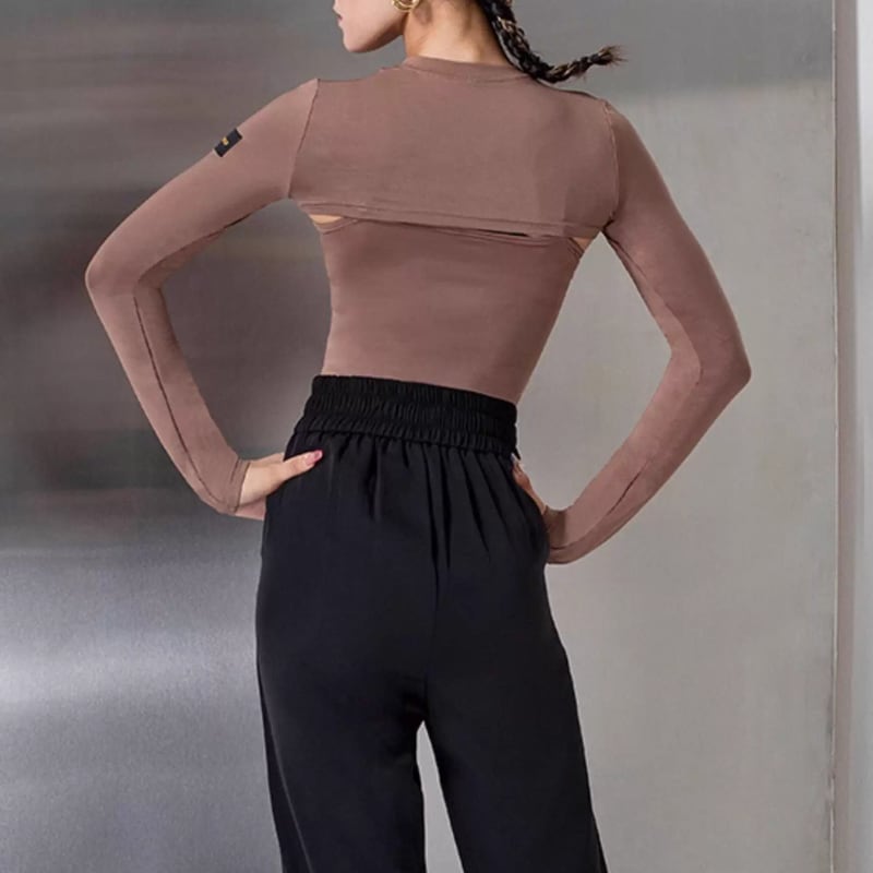 ボレロの計算された「見せる」カットアウトが上半身の動きを際立たせ、周りの目を惹きつけるモダンで自信に満ちたルックスを演出します。
