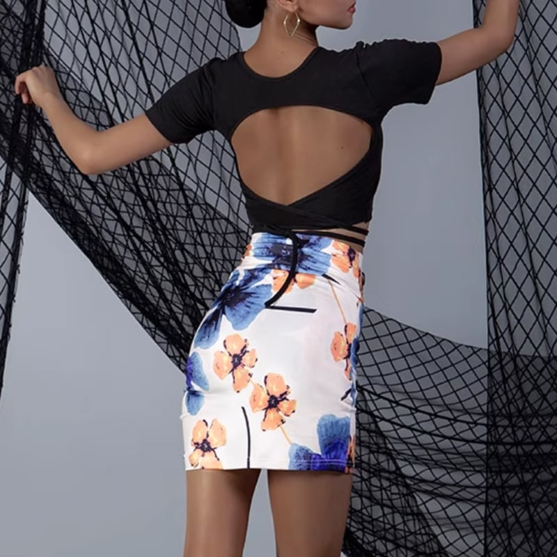 背中のデザインが目を引き、ヘルシーな肌見せが叶うショート丈トップス。