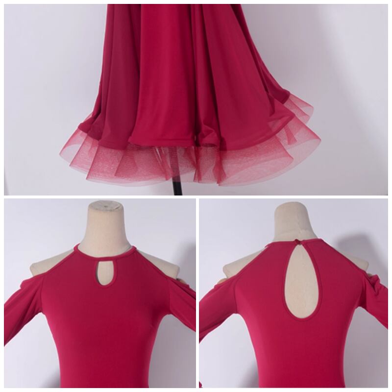 ホルターネック カットアウト オフショルダー ダンスドレス 3col D00485