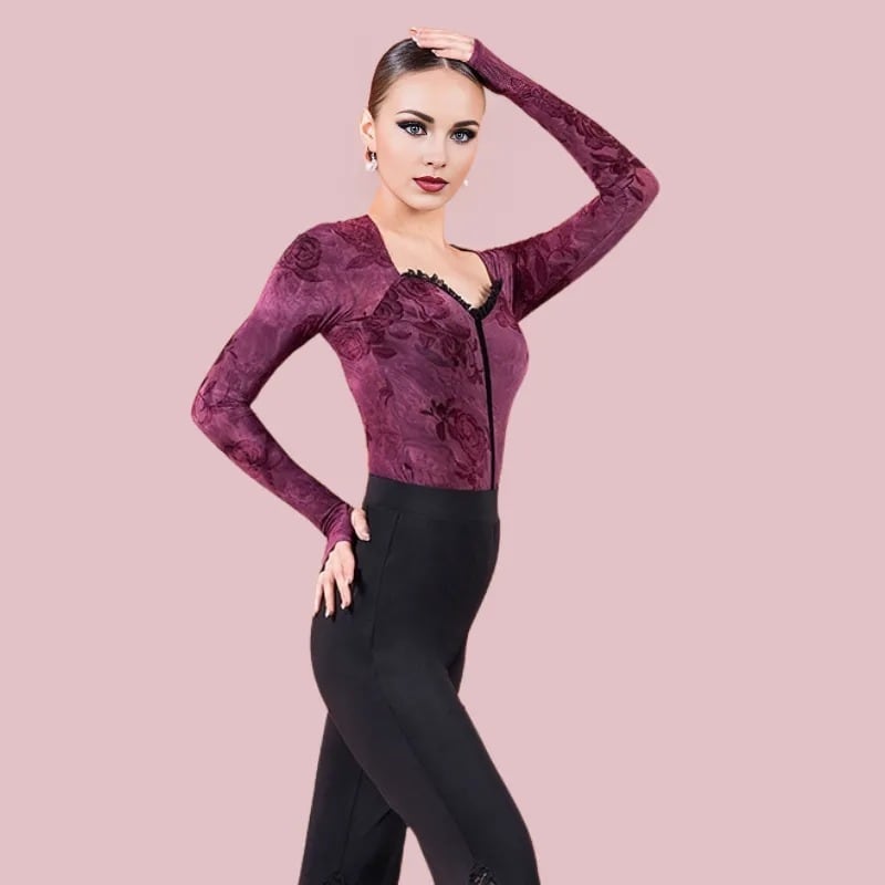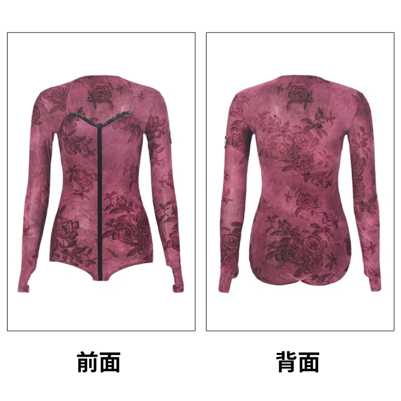フロッキープリントで描かれたローズ柄が、優雅さと艶やかさを醸し出すレオタードタイプのトップス。