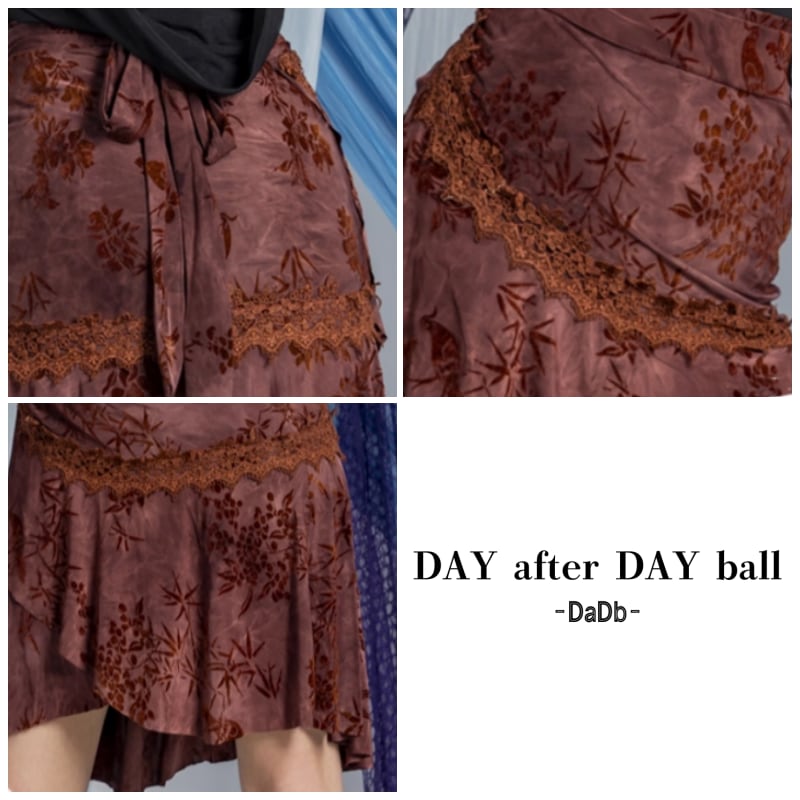 フラワーモチーフ ウエストリボン ベロア ラテンスカート 1col D00473