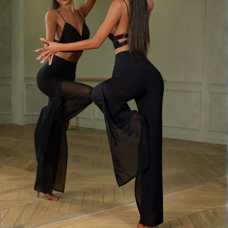 スリットデザイン フレア ロングダンスパンツ 2col D00493