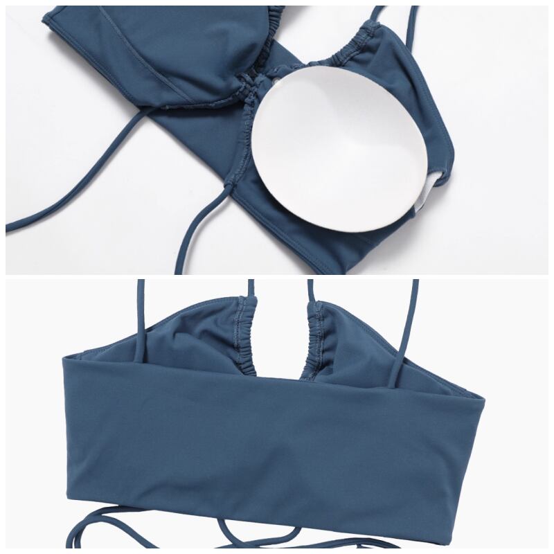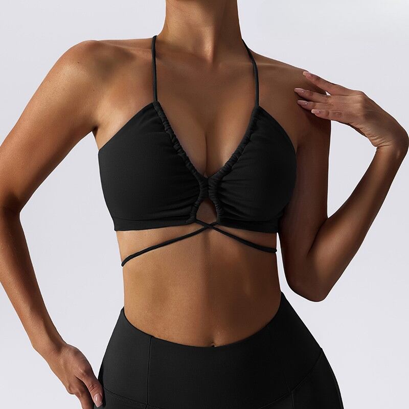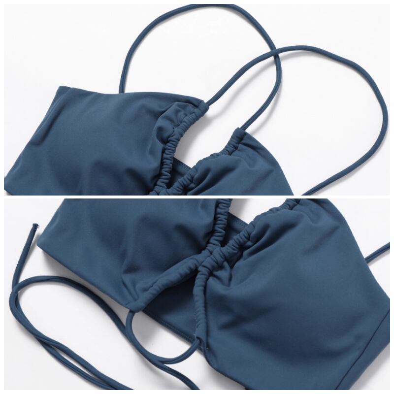 ホルターネック ギャザーデザイン クロスストラップ ブラトップ 3col D00482