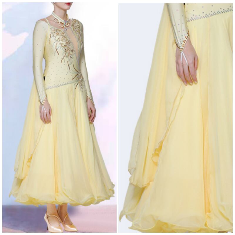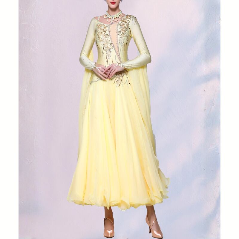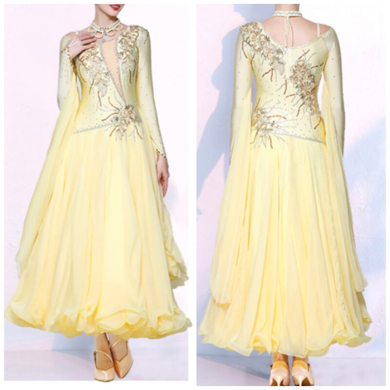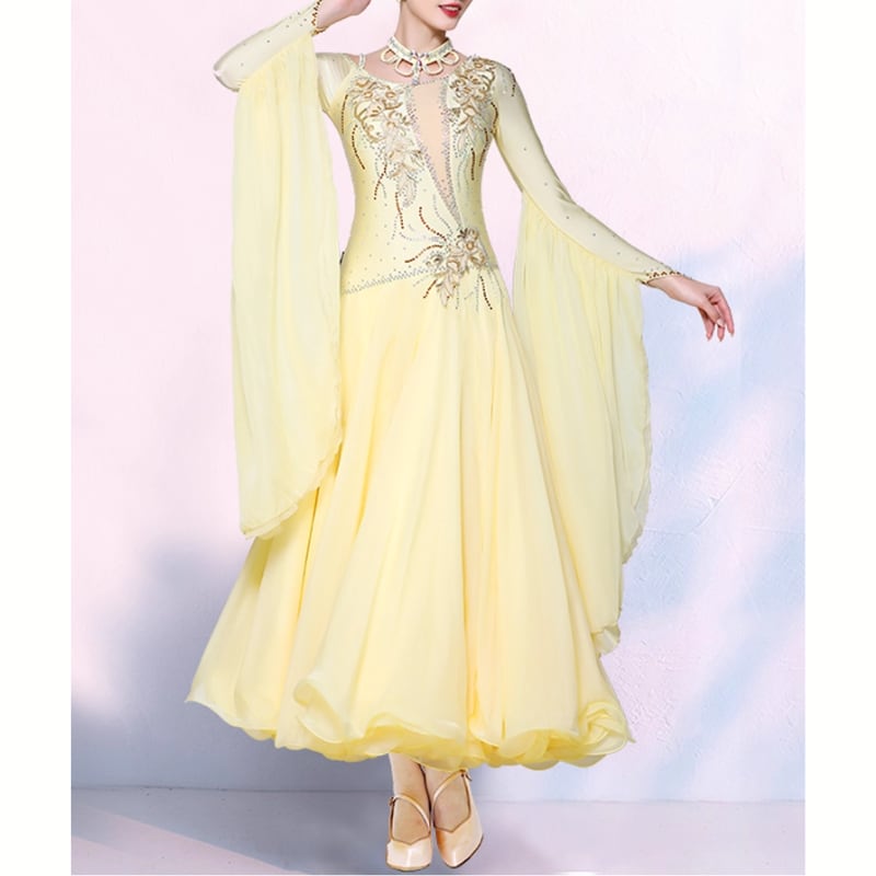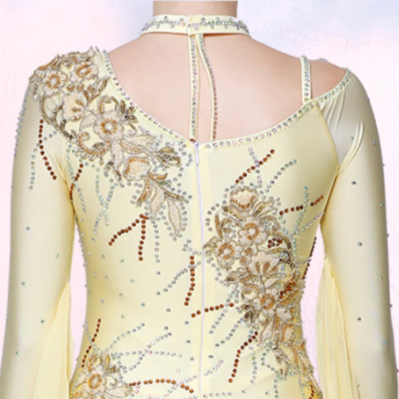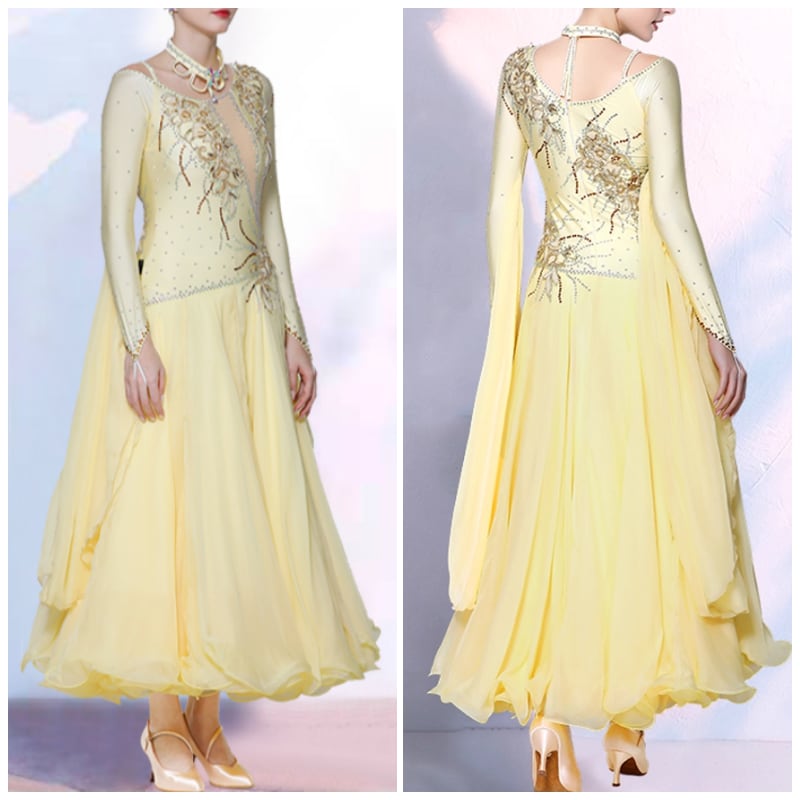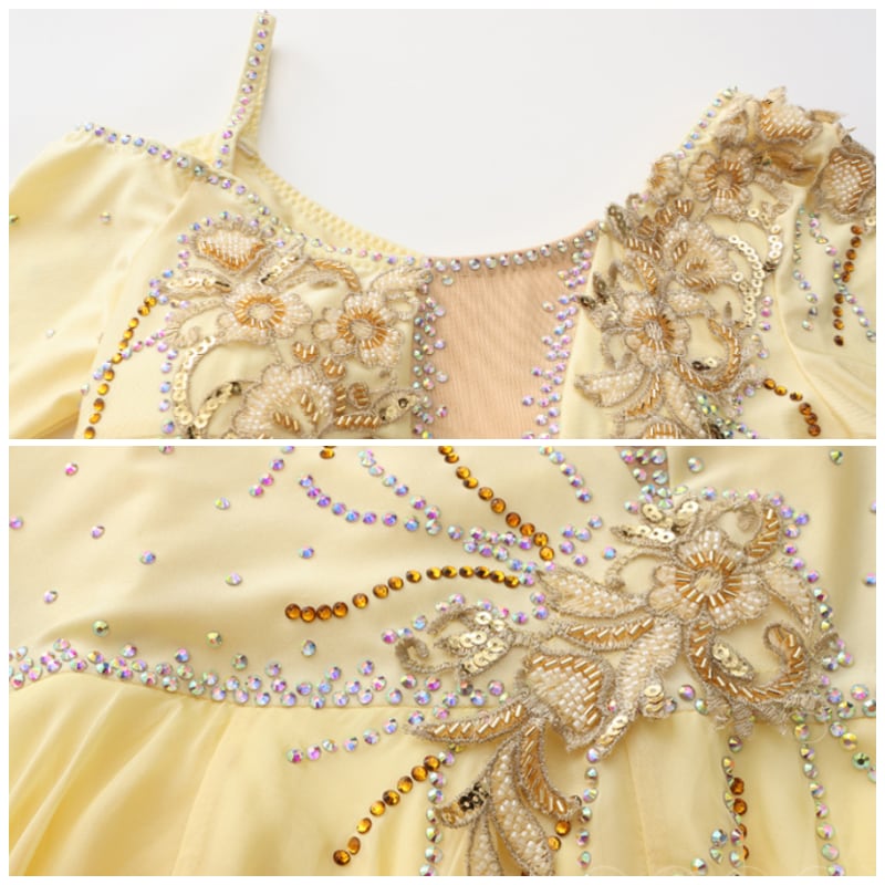 レモンイエロー ラインストーン ゴージャスフレア ダンスドレス 1col D00480