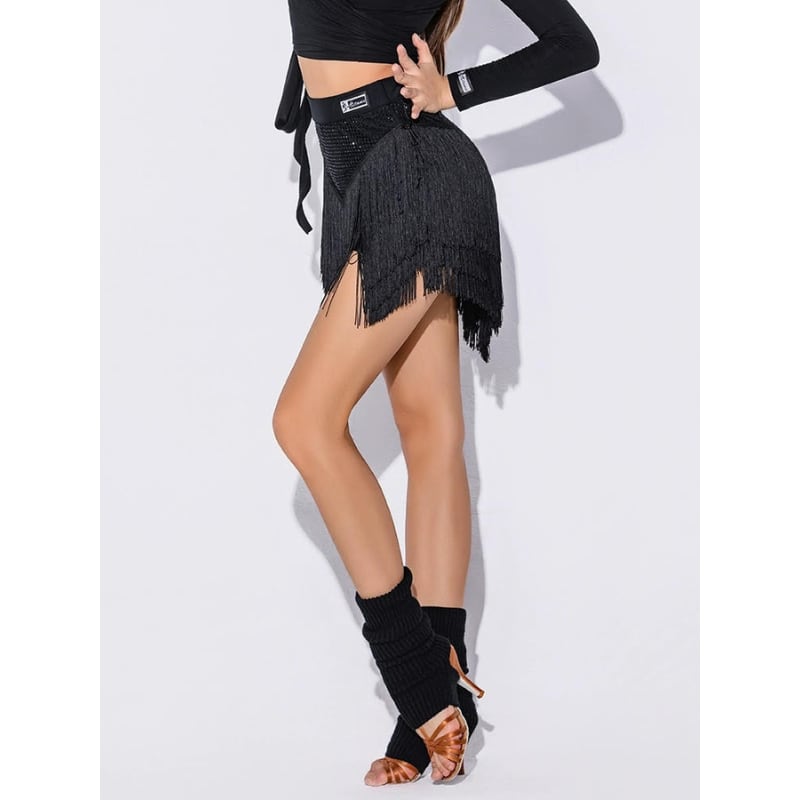 躍動感あふれるフリンジと煌めく装飾が、視線を釘付けにするダンススカート。