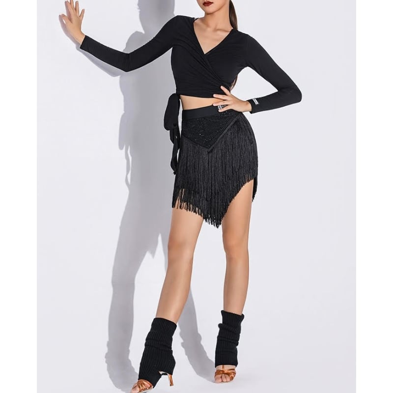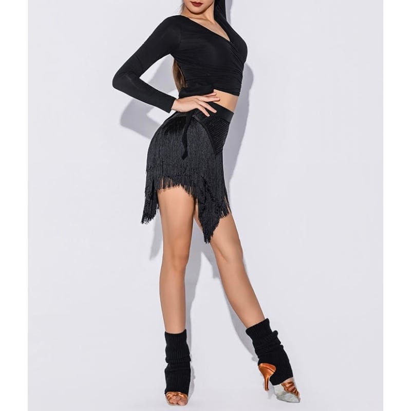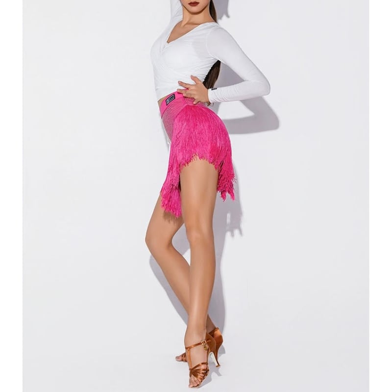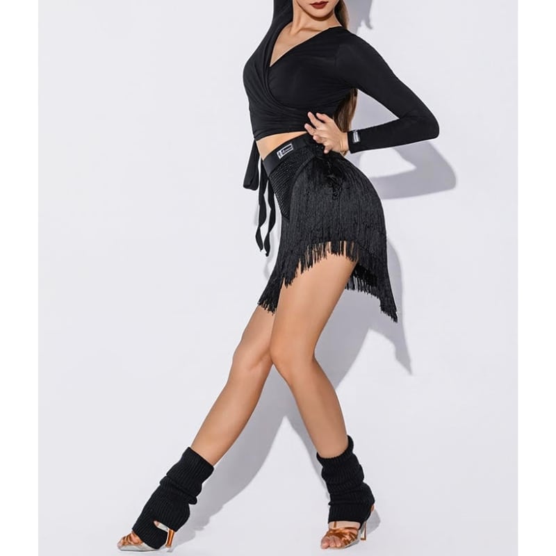 激しいステップに合わせて揺れる長いフリンジが、脚のラインをより長くダイナミックに魅せます。