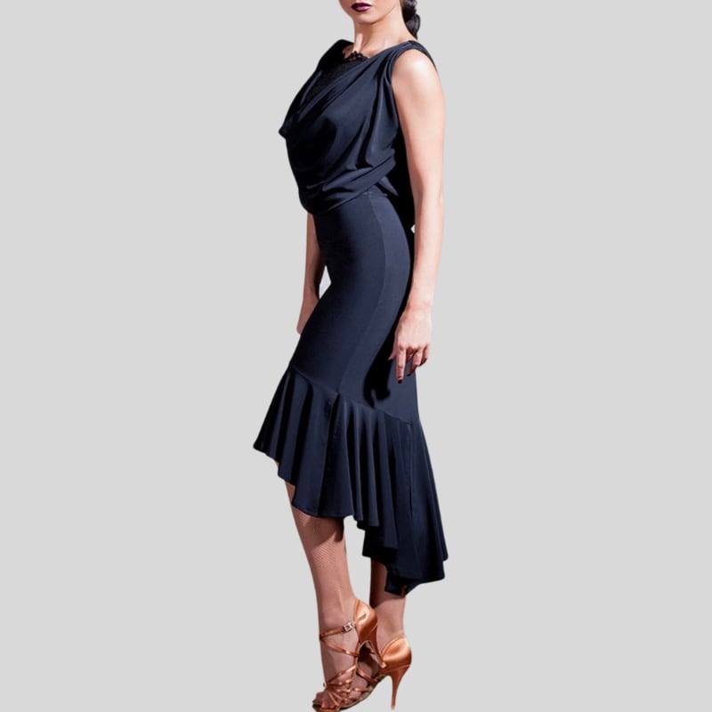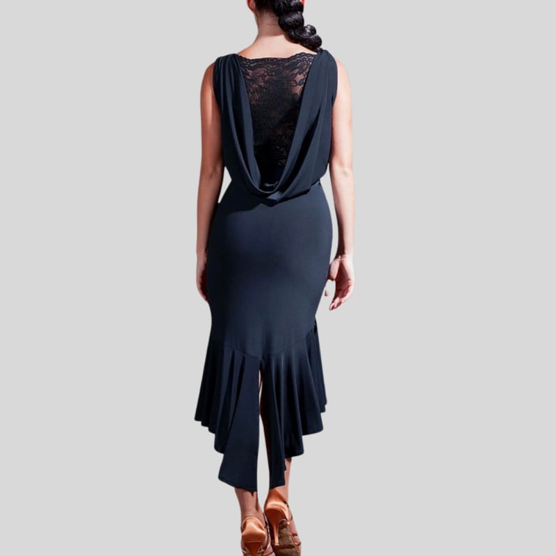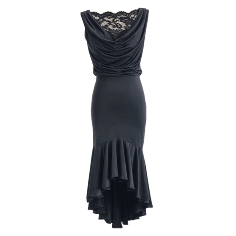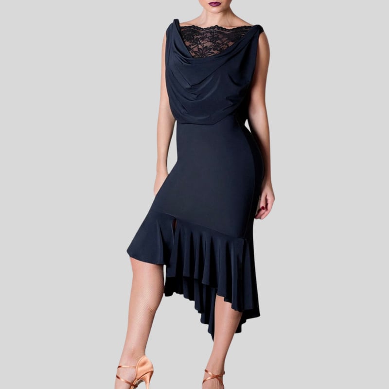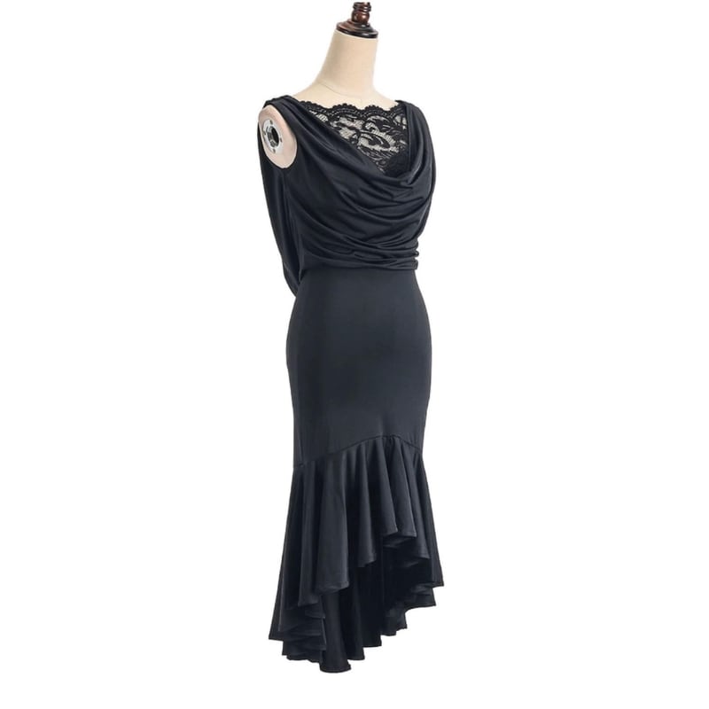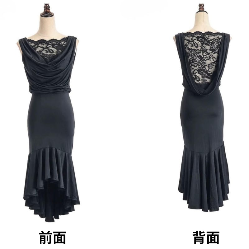 ドレープネック レース アシンメトリー ダンスドレス 1col D00523