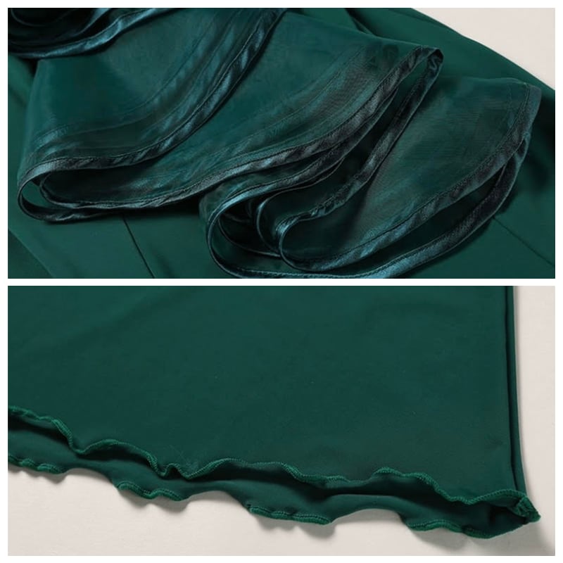 足元にかけて贅沢に広がるフレアシルエットが、ステップを踏むたびに優雅でダイナミックな躍動感を生み出します。