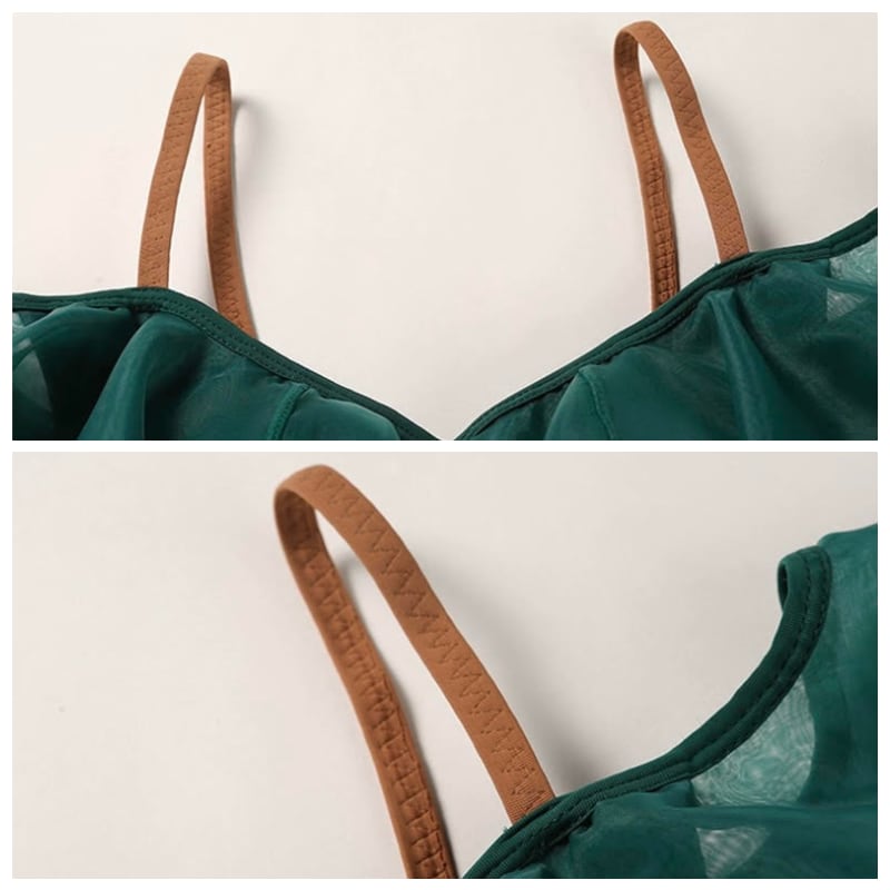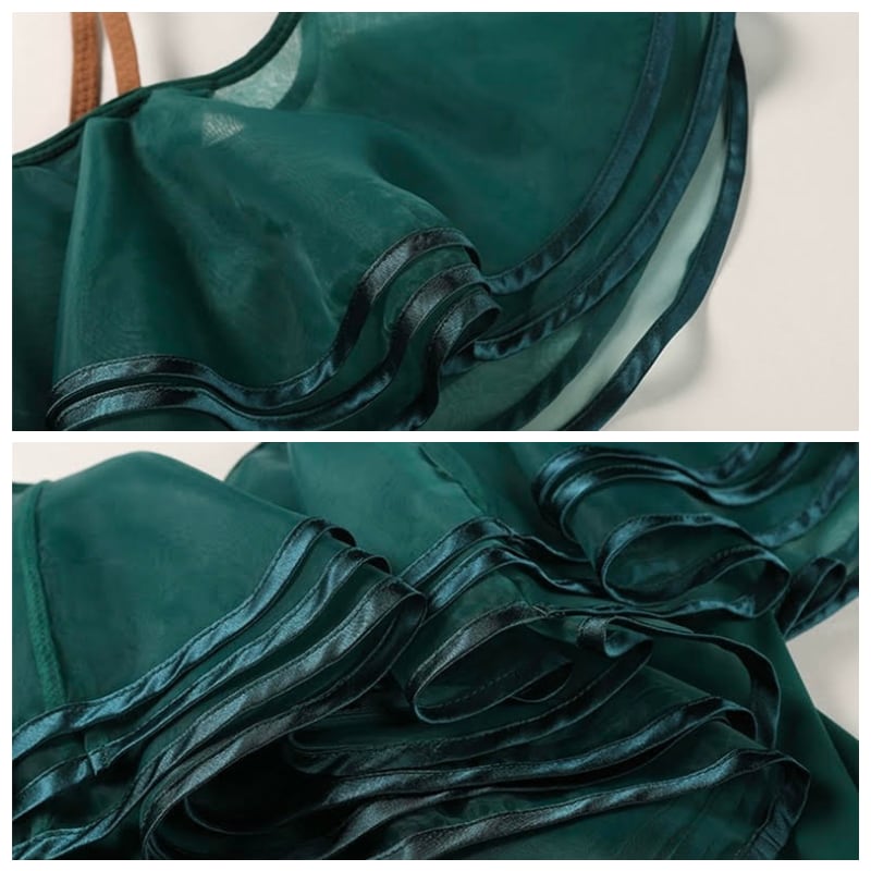 幾重にも重なったフリルがデコルテを華奢に見せ、上半身の動きに女性らしい柔らかな表情を加えます。