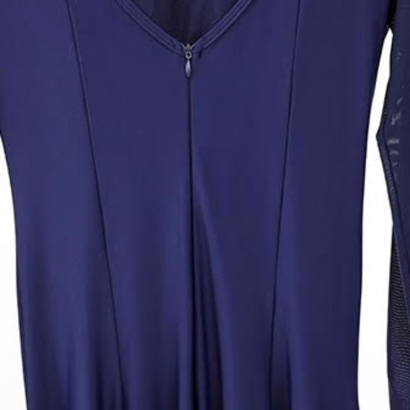 ネイビー ビジュー シアースリーブ ロングフレア ダンスドレス 1col D00526