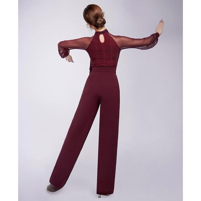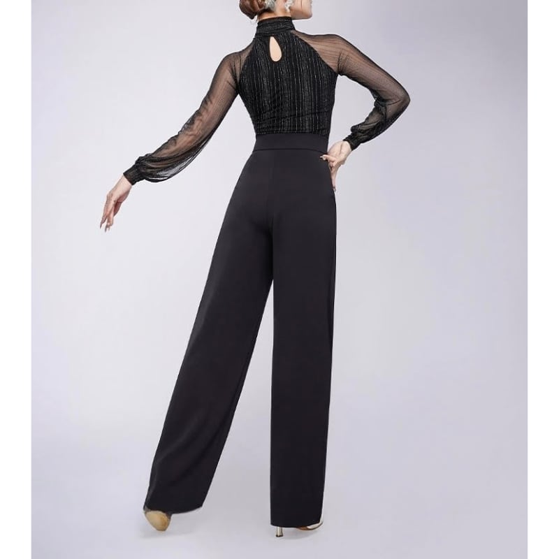 透け感のあるメッシュに繊細なグリッターが煌めく、ボウタイデザインのダンスブラウス。